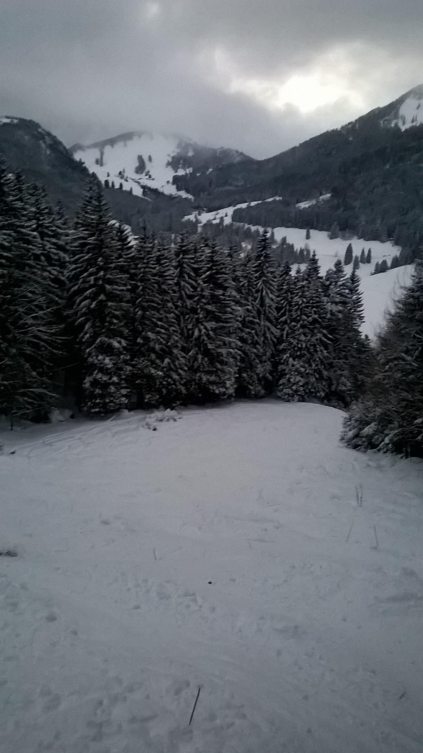 Tourenverhältnisse: Aufstieg über Lochgraben und weiter die ehemalige Piste bis zur Bergstation der Taubensteinbahn. Ausreichend Schnee schon im steilen Lochgraben. Im oberen Teil herrlicher Pulverschnee und noch Platz für eigene Spuren. An den Graten ist Steinkontakt möglich, sonst wirklich schön viel Pulverschnee mit guter Unterlage. Schade dass die Tage (noch) so kurz sind, denn bei Tageslicht wäre die Abfahrt noch viel genussvoller. Schön für den der tagsüber schon Zeit hat!