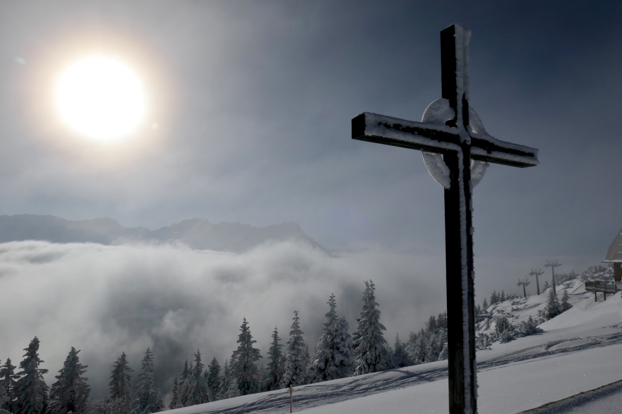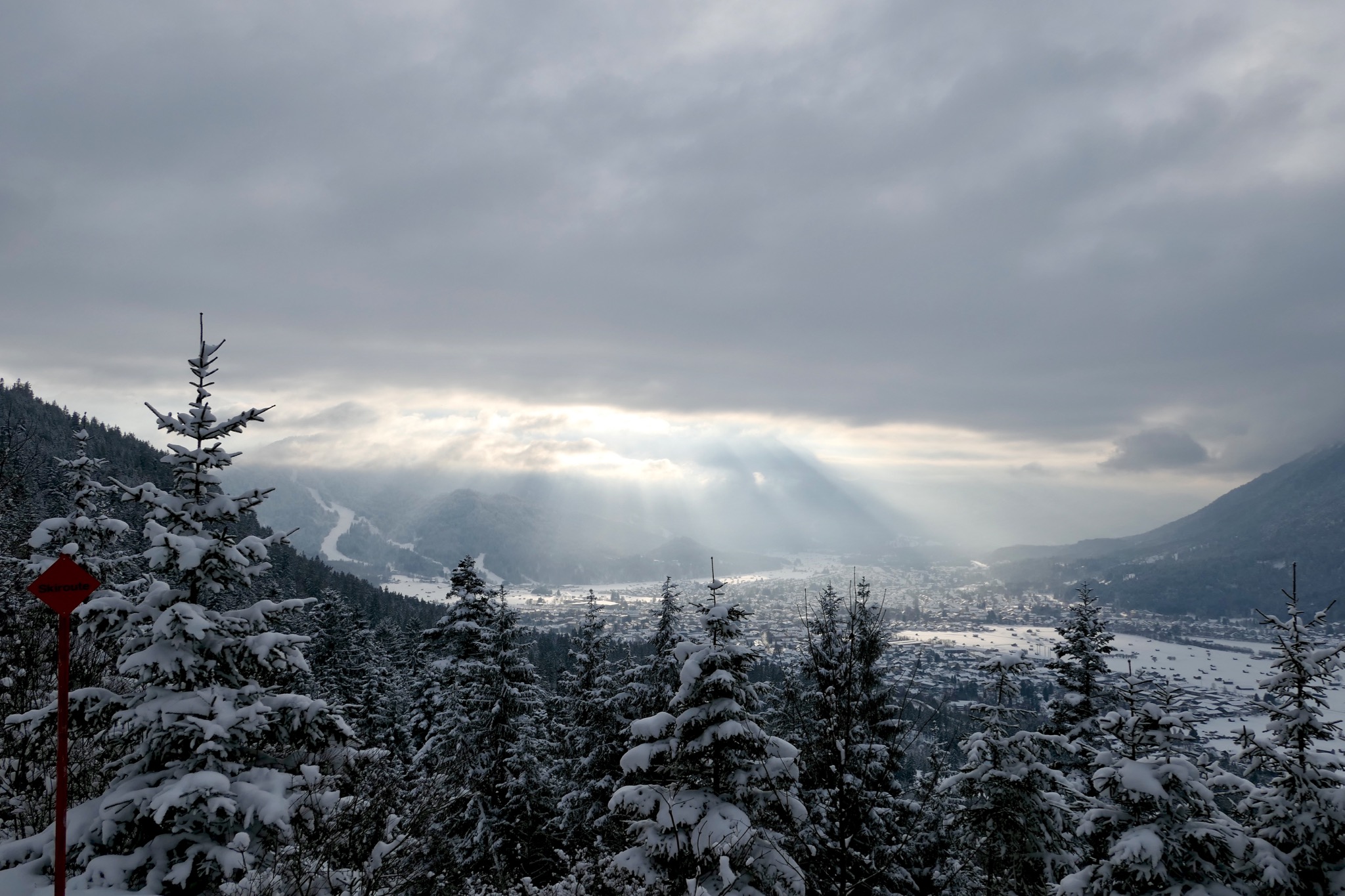 Tourenverhältnisse: Aufstiegsspur an den neuralgischen Stellen ausgelatscht, Piste nahezu völlig eingefahren, Strasse sehr gut