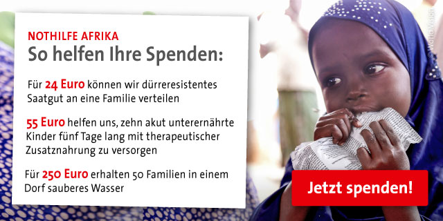 Durch die extreme Dürre am Horn von Afrika und anhaltende Gewalt in der Region um den Tschadsee sind über 23 Millionen Menschen vom Hungertod bedroht, darunter zahllose Kinder. Besonders dramatisch ist die Situation in Nigeria, Kenia, Somalia, Äthiopien und im Südsudan.