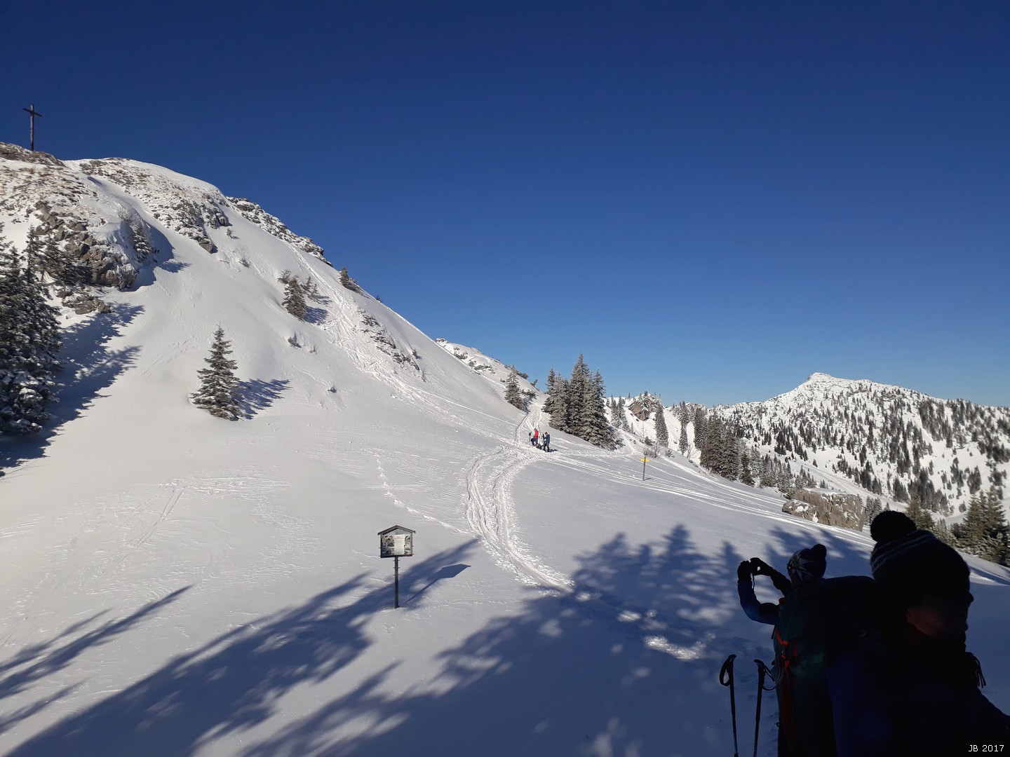 Vom PP durch die beiden Lochgräben zur Taubensteinbahn Bergstation und weiter nord-östlich am Taubenstein vorbei zum Lempersberg. Traumhafte Abfahrt über die Untere Wallenburgalm mit genug Platz für eigene Spuren bis an den Waldrand oberhalb der Bergwachthütte. Anstieg zur Taubensteinbahn Bergstation und Abfahrt über die Lochgräben zum PP. Der untere Lochgraben war am Nachmittag schon wieder eine Buckelpiste.