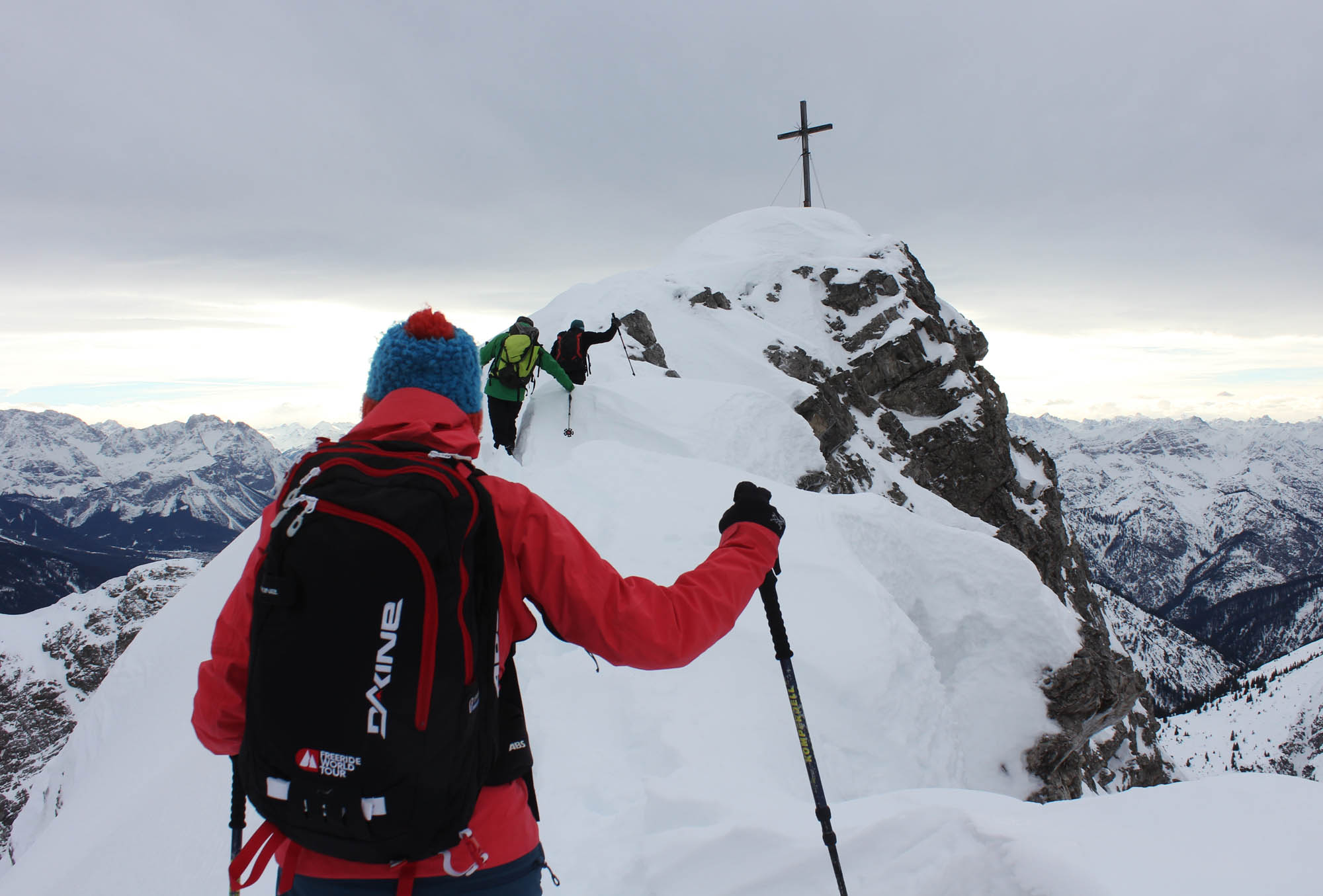 Gipfelanstieg dann 2 cm Eiskruste auf lockerem Schnee . Jetzt gespurt.