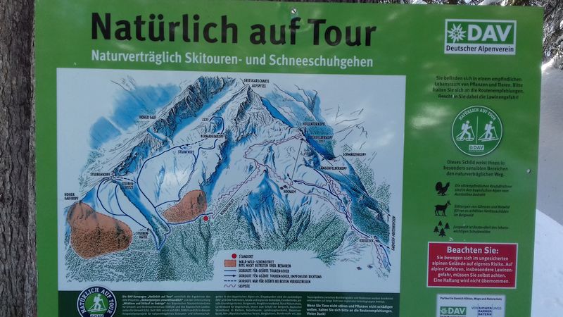 Sonstiges: Alpspitze ist fast pistenmäßig eingefahren, die Route ist mittlerweile im unteren Bereich dezent markiert (Naturverträgliche Skitouren) und die Schneise wurde etwas ausgeholzt.