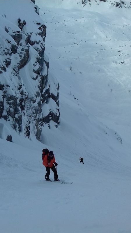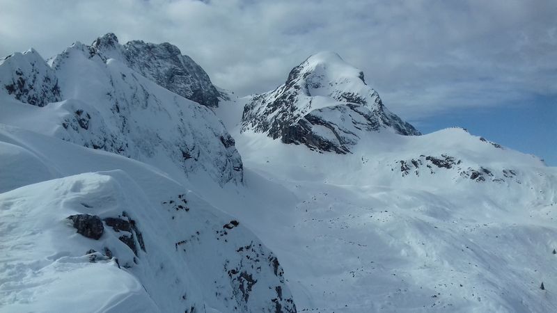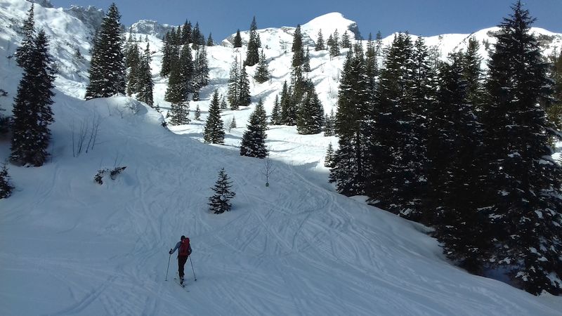 Tourenverhältnisse: im Tal noch -10°C und oben an der Bergstation um 9 Uhr bereits +1°C. Windstill, knalle Sonne und voll warm beim Aufstieg zum Bernadeinkopf. Auf jeden Fall war es heute eine schweißtreibende Angelegenheit bei frühjahrsmäßigen Bedingungen. Sulziger, teilweise bereits nasser Schnee wechselte sich ab mit Bruchharsch. Nach der Abfahrt Aufstieg über den steilen nordwestseitigen Hang zum Mauerschartenkopf: schwerer, gesetzter (Pulver)Schnee auch bei der nordseitigen Abfahrt zur Stuibenhütte. Am Nachmittag hat es zugezogen mit aufkommenden Wind. Auf der Route kein Triebschnee, kein Raureif und auch keine aufbauende Umwandlung angetroffen. Frühjahrsverhältnisse.