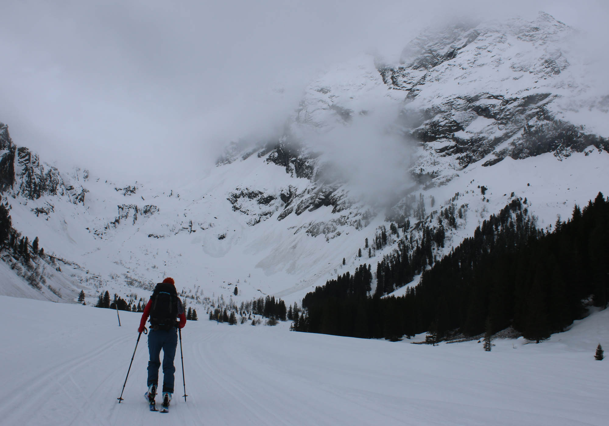 Gefahreneinschätzung: Die für den Nachmittag ausgegebene Lawinenstuf e 3 war wegen vileer Wolken und Wind nicht zutreffend. Eher Stufe 2.