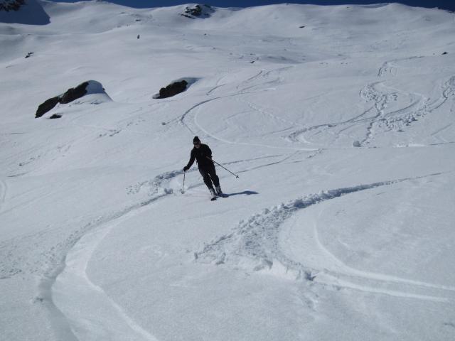 Tourenverhältnisse: viel Schnee für Ende März, Forststraße und teilweise auch die Waldpassagen noch gut zu fahren. Ostertal war oben bei der Abfahrt um 11 Uhr schon sehr sumpfig, kein Fahrspass. Die Latschen am Gipfelaufbau sind alle zugeschneit, sodass man mit Ski bis zum Vorgipfel gehen kann!