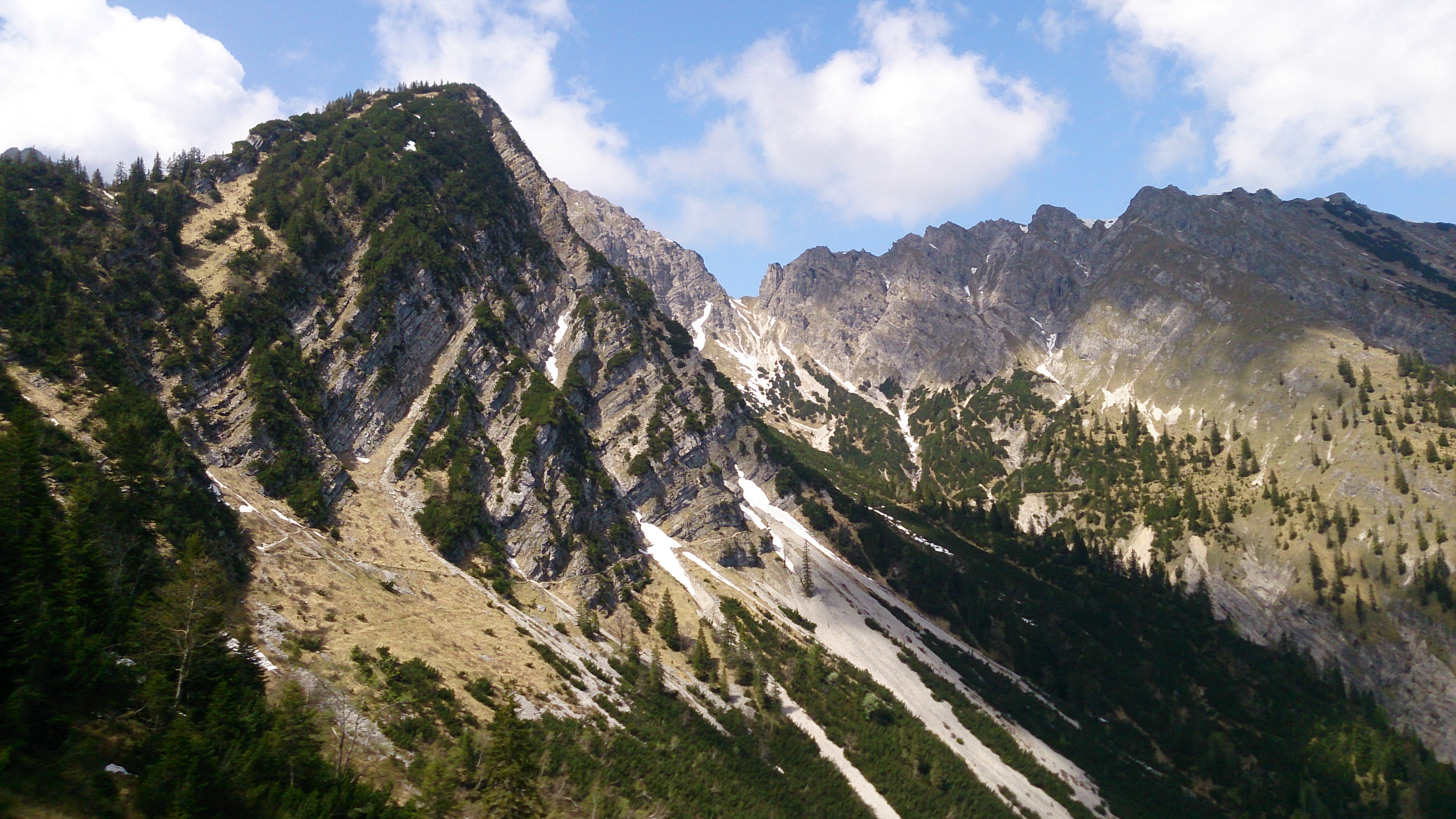 Sonstiges: Heute über die sich ziehende Route von Wallgau über die (noch geschlossene) Fischbachalm und den Hundstall in den Soiernkessel. Auf dieser Route nur einige kleine, unproblematische Schneefelder. Der Lakaiensteig wurde auch gemacht, hier aber noch mehrere deutlich steilere Altschneefelder - meine Sache ist so etwas nicht, auch wenn es bei weichen Verhältnissen wahrscheinlich nicht so problematisch ist. Bis zum Soiernhaus (geschlossen) recht wenig los, dann habe ich aber doch eine für Anfang Mai beachtliche Zahl an Wanderern getroffen. Zur Schöttelkarspitze geht es auf dieser Route (sonnseitig) recht passabel ohne Spezialausrüstung hoch, auch wenn noch einige Altschneefelder zu queren sind. Am Gipfel fiel leider prompt Nebel ein, lichtete sich aber nach einiger Zeit wieder etwas.