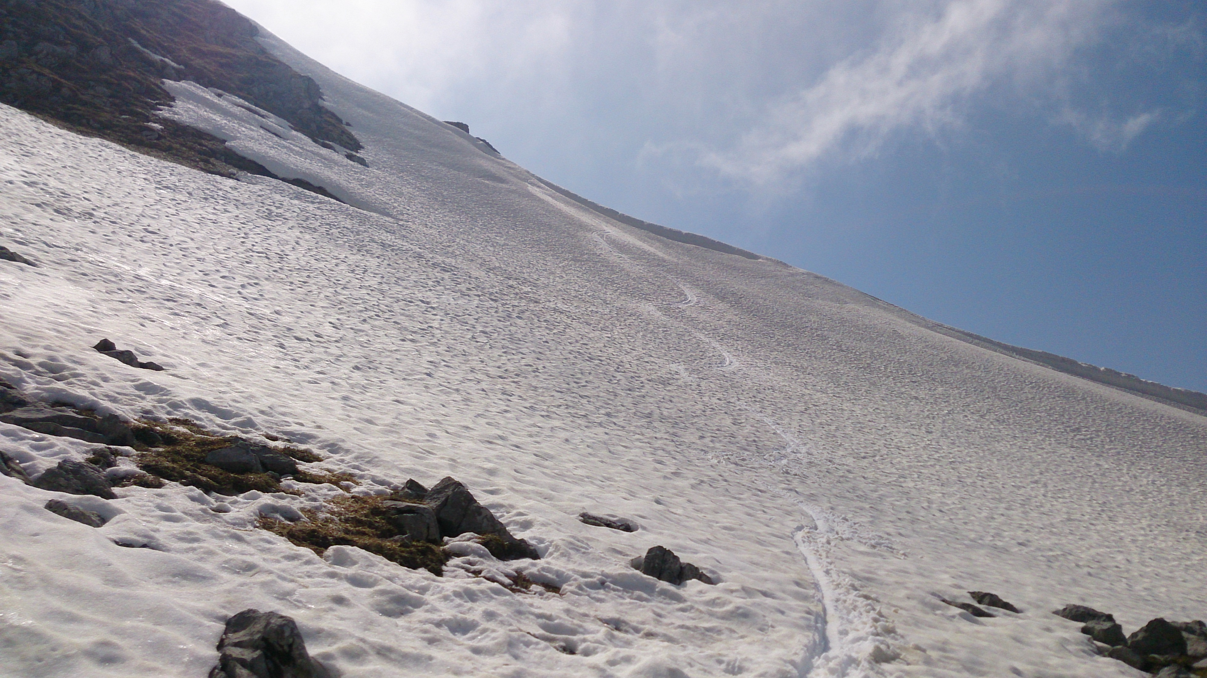 Guter Sommerschnee in der Abfahrt vom Feldernkopf: