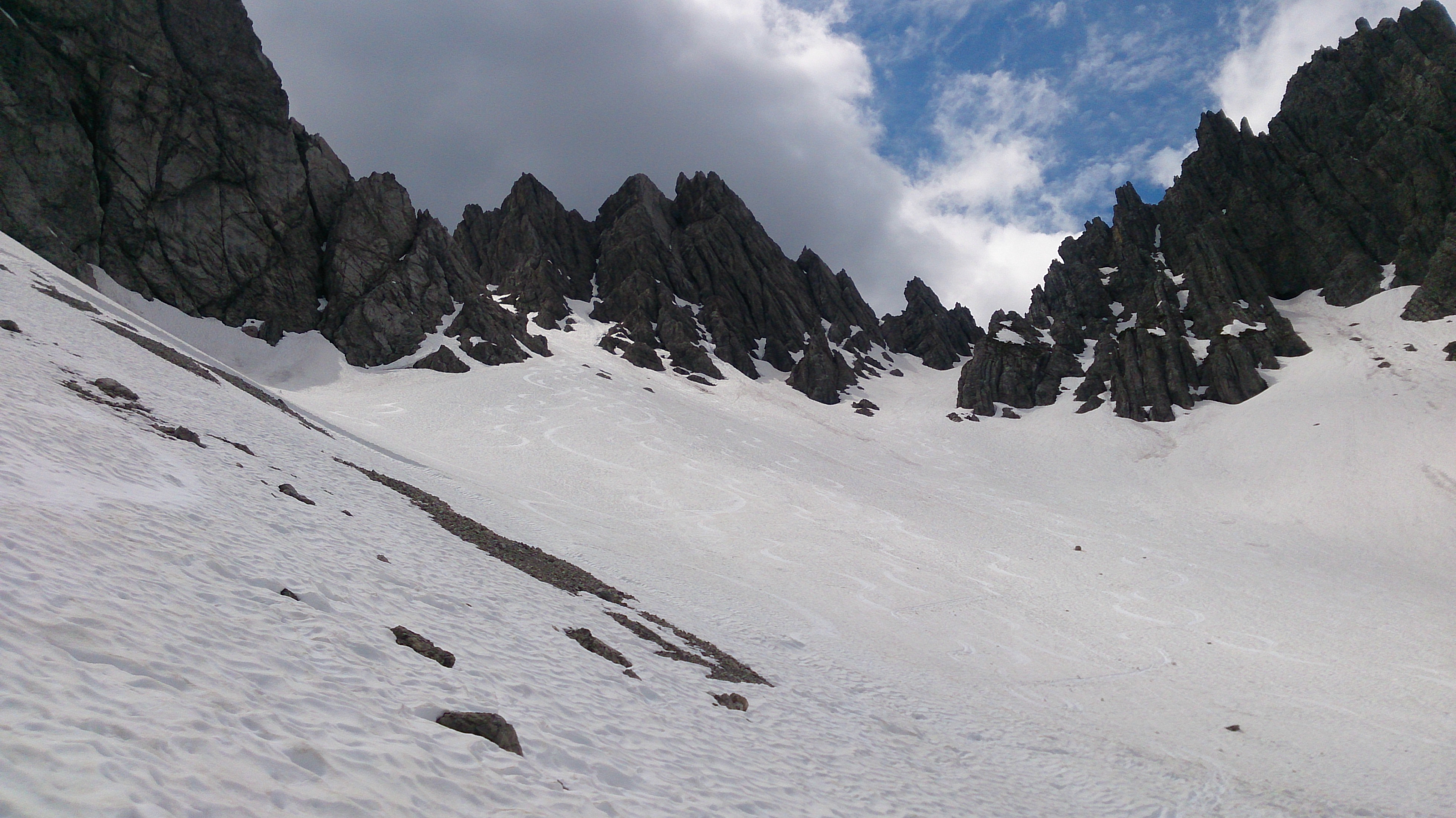 Sehr gute Abfahrt durch die erste Rinne - landschaftlich auch beeindruckend: