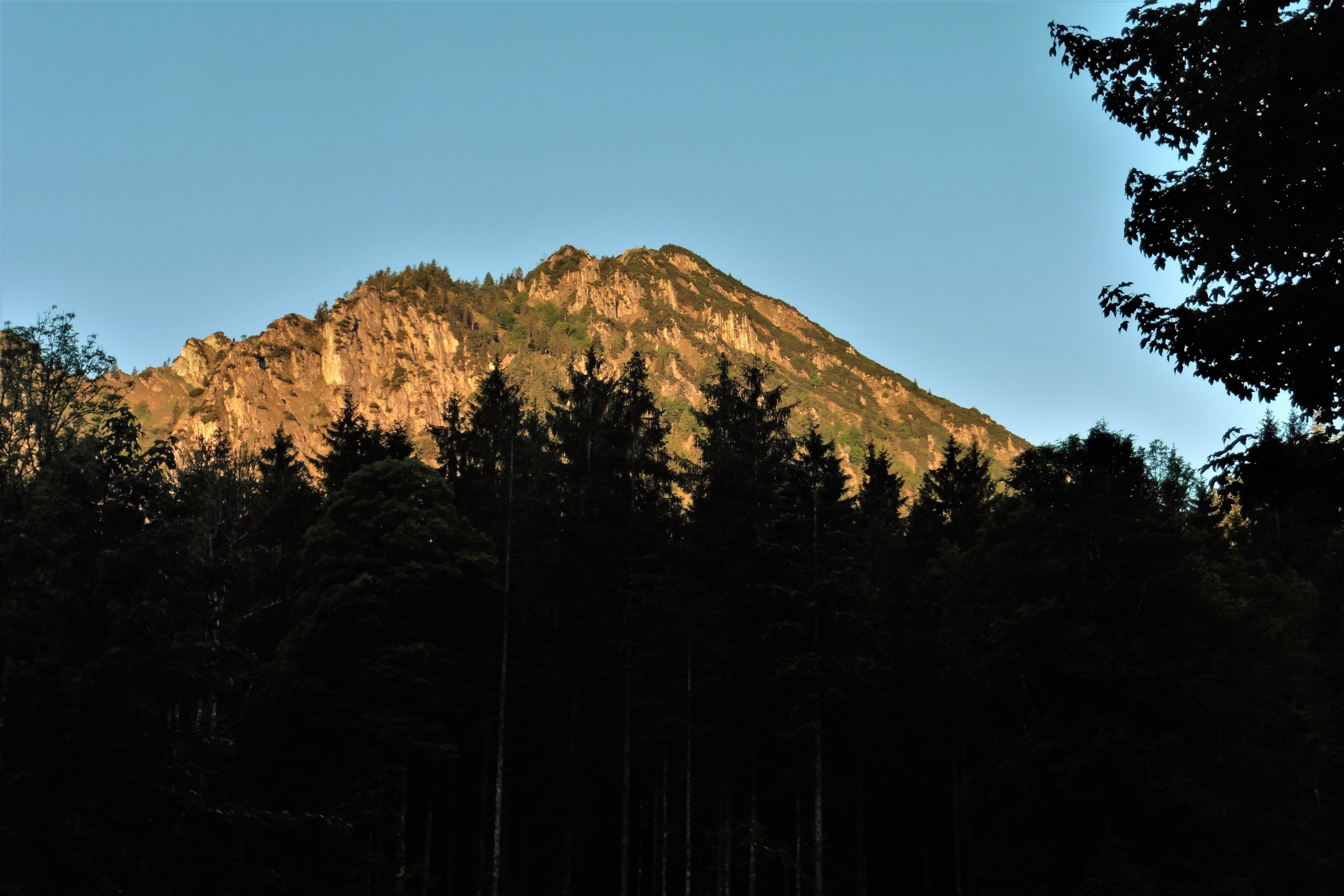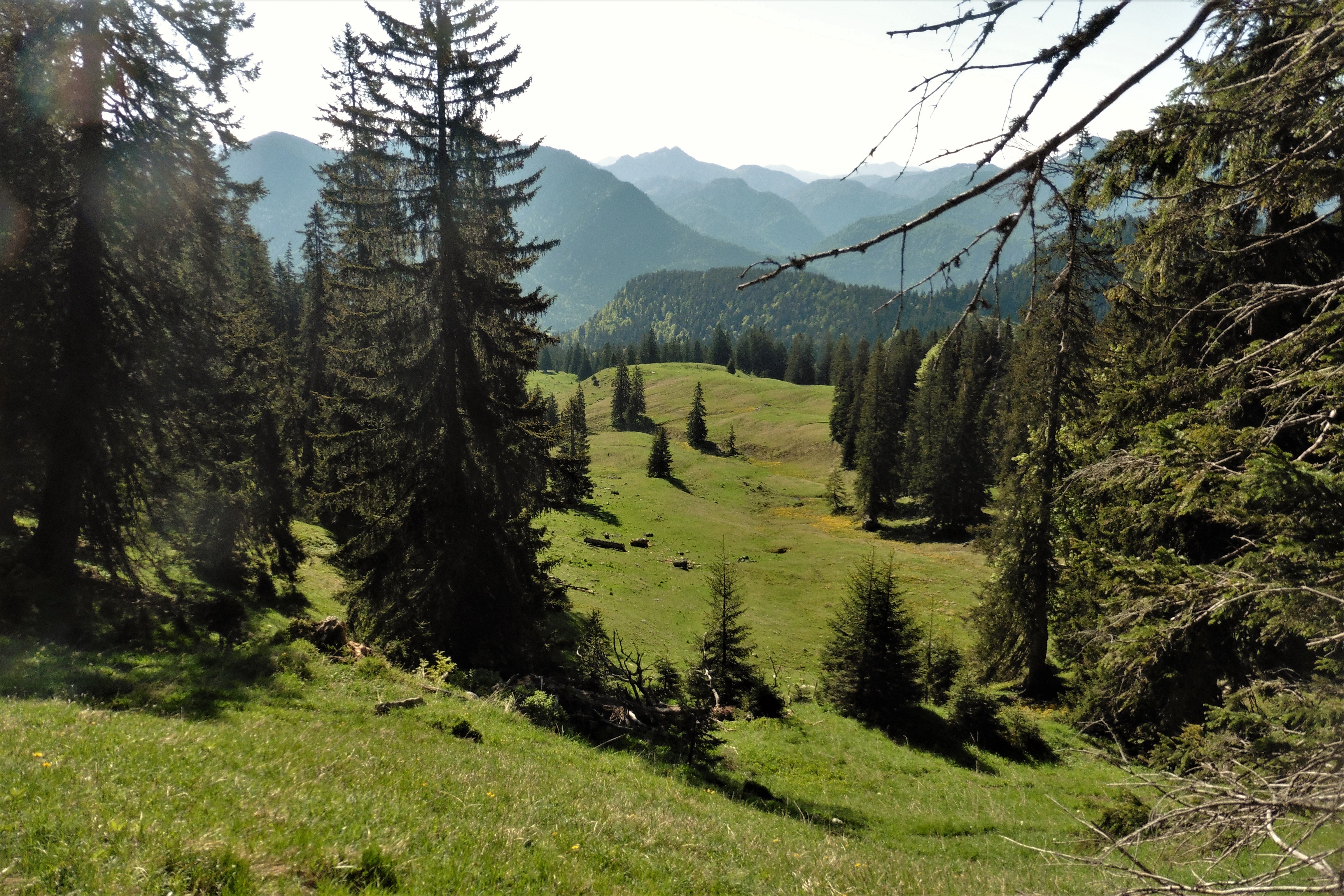 Sonstiges: auf der leicht ansteigenden Forststraße frühmorgens - in splendid Isolation - durchs Söllbachtal; kurz nach der Luckengrabenalm auf die Forststraße 607b (AV-Karte BY 13) nach links abgebogen; dann frei durch den stark verblockten, urwaldartigen Bergwald in die Scharte zwischen Silberkopf und Hirschberg aufgestiegen; von dort auf deutlichen Steig (nicht in der AV-Karte eingezeichnet) durch die Südflanke auf den Hirschberg; der Abstieg erfolgte auf demselben Steig in die Senke zum Silberberg, dann frei über die Wiesen der malerisch gelegenen Weidbergalm zur Forststraße; über diese etwas langatmig zurück zum Bikedepot und die abschließende Abfahrt zum Parkplatz genossen;