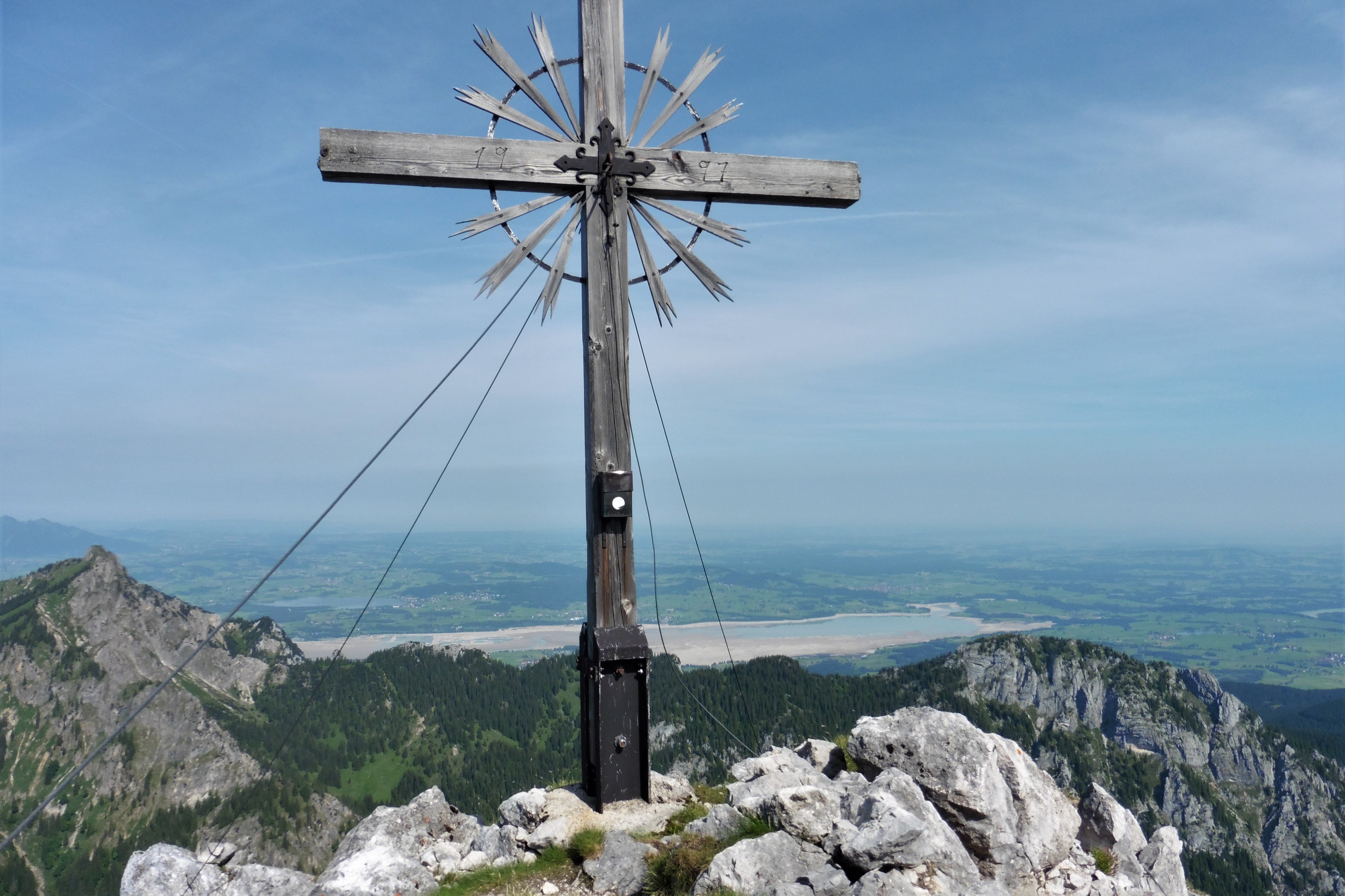 Sonstiges: der Aufstieg erfolgt über die Jägerhütte (Mittwoch Ruhetag) zum Gabelschrofensattel; von dort Kletterei im Schwierigkeitsgrad II+ auf den Gabelschrofen - ca. 90 Hm; dann von Norden auf die Krähe; der Abstieg geht zum Roggentalsattel und weiter durchs Köllebachtal; siehe AV-Karte BY 6;