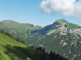 Sonstiges: das Walmendinger Horn entsendet nach NO einen Kamm, der das Schwarzwassertal vom Kleinwalsertal trennt; der Grat läuft im Skigebiet Heubergmulde aus; von Baad auf dem Höhenweg über div. Almen in die Heubergmulde; dort beginnt dann die Suche nach dem Pfad zum Grat; mir war das nicht auf Anhieb gelungen, d.h. ich stieg pfadlos durch schulterhohes, patschnasses Farngestrüpp auf den Grat, wo ich dann den Pfad entdeckte; der Weiterweg erfolgt fast immer auf dem Grat und ist nicht zu verfehlen; nach der Traverse der obersten Seilbahnstütze macht der Grat einen 90° Knick nach rechts und endet im Gipfelbereich des Walmendinger Horns; der Abstieg erfolgte auf mark. Wanderweg über die beiden Lüchlealpen nach Baad;