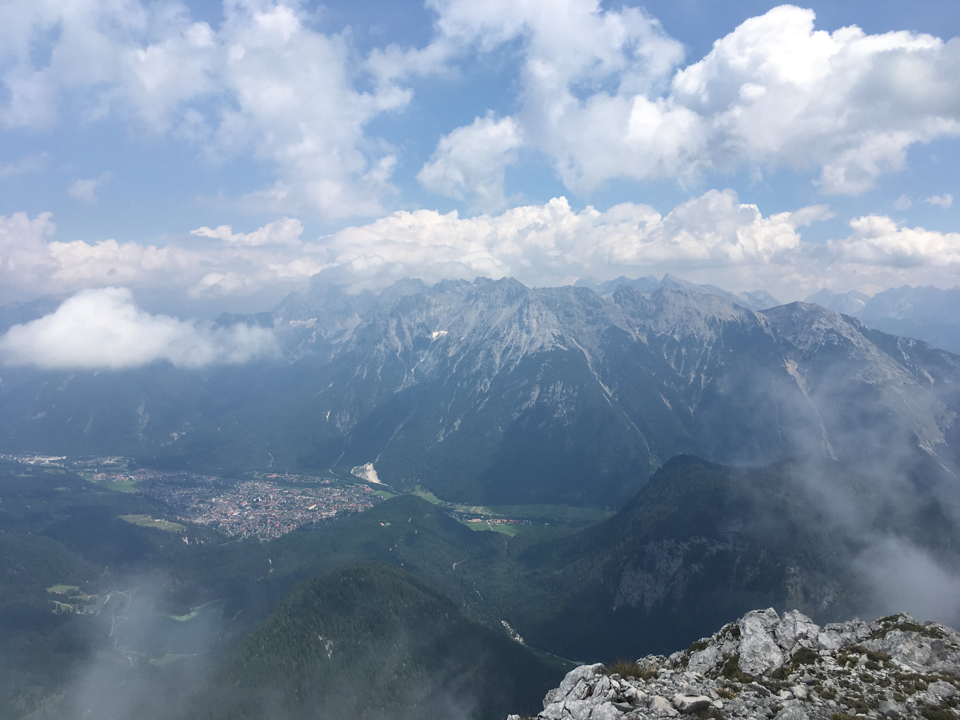 4 - Blick von der Unteren Wettersteinspitze nach Mittenwald und zur Karwendelkette:
