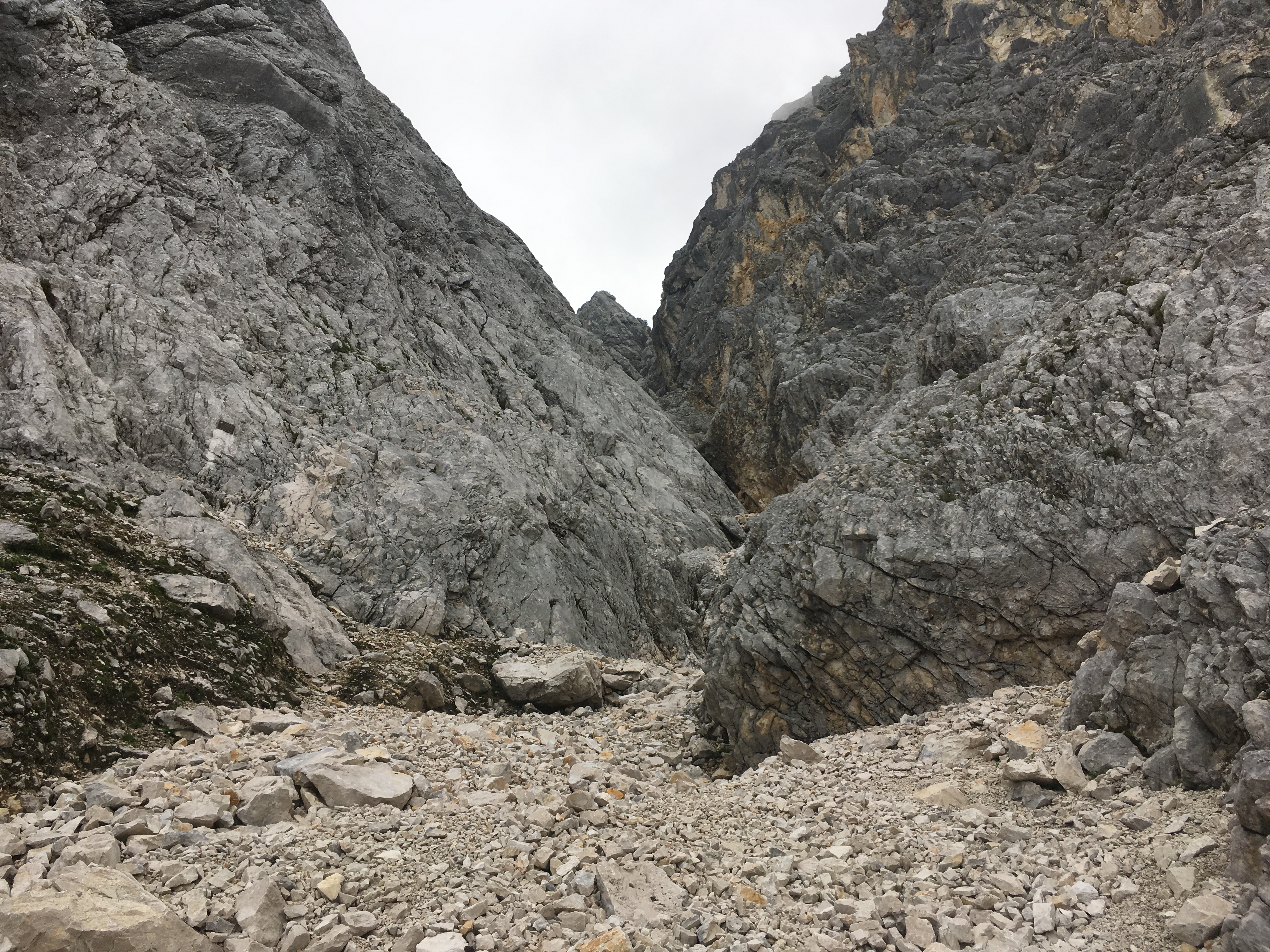 1 - Am Beginn des Schuttfelds, die Aufstiegsrinne ist oben erkennbar: