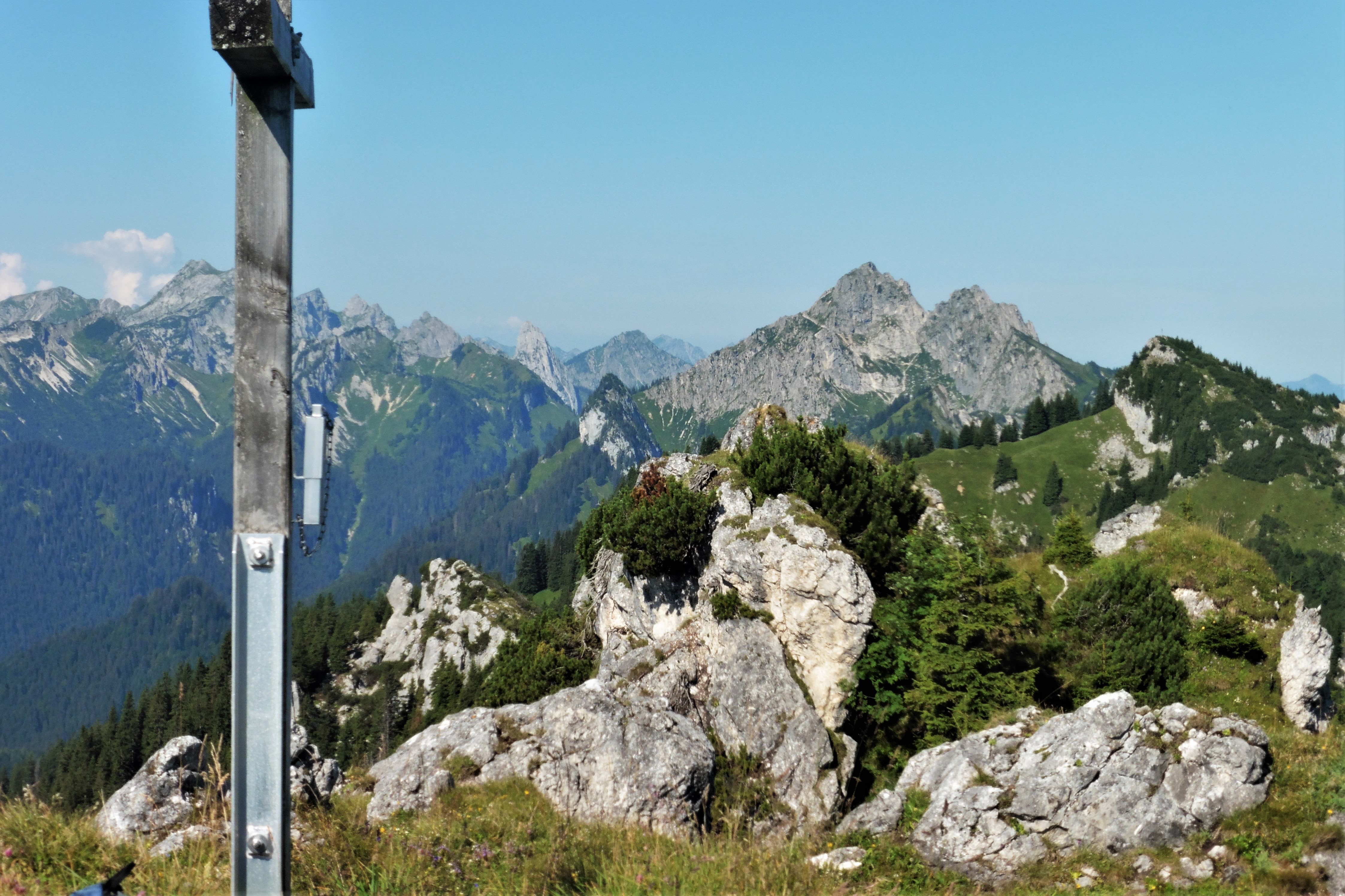 Bild 6: am Gipfel; von links - Hennenkopf, Klammspitzen, Geiselstein und Hochplatte;