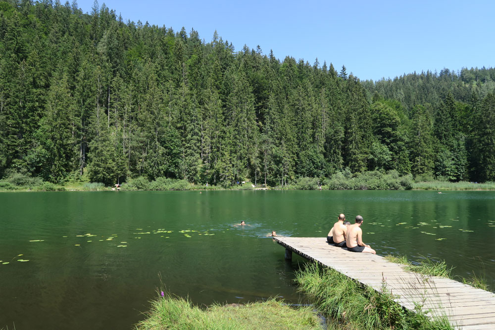 Am Vormittag noch erstaunlich angenehme Temperaturen, ein Großteil der Route verläuft aber auch durch den Wald. Und ab Mittag liegt man eh am besten am wunderschönen kleinen Bichlersee.
