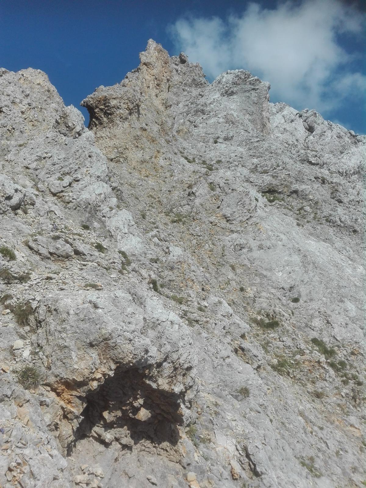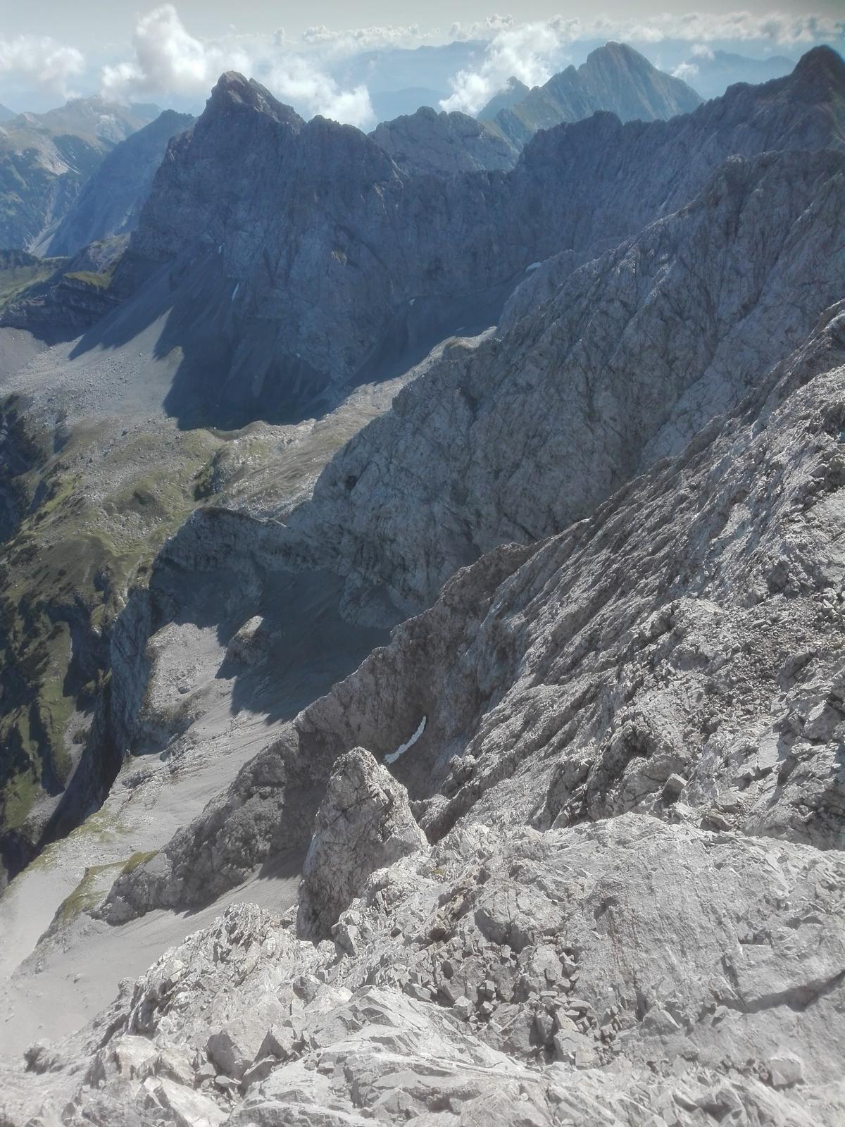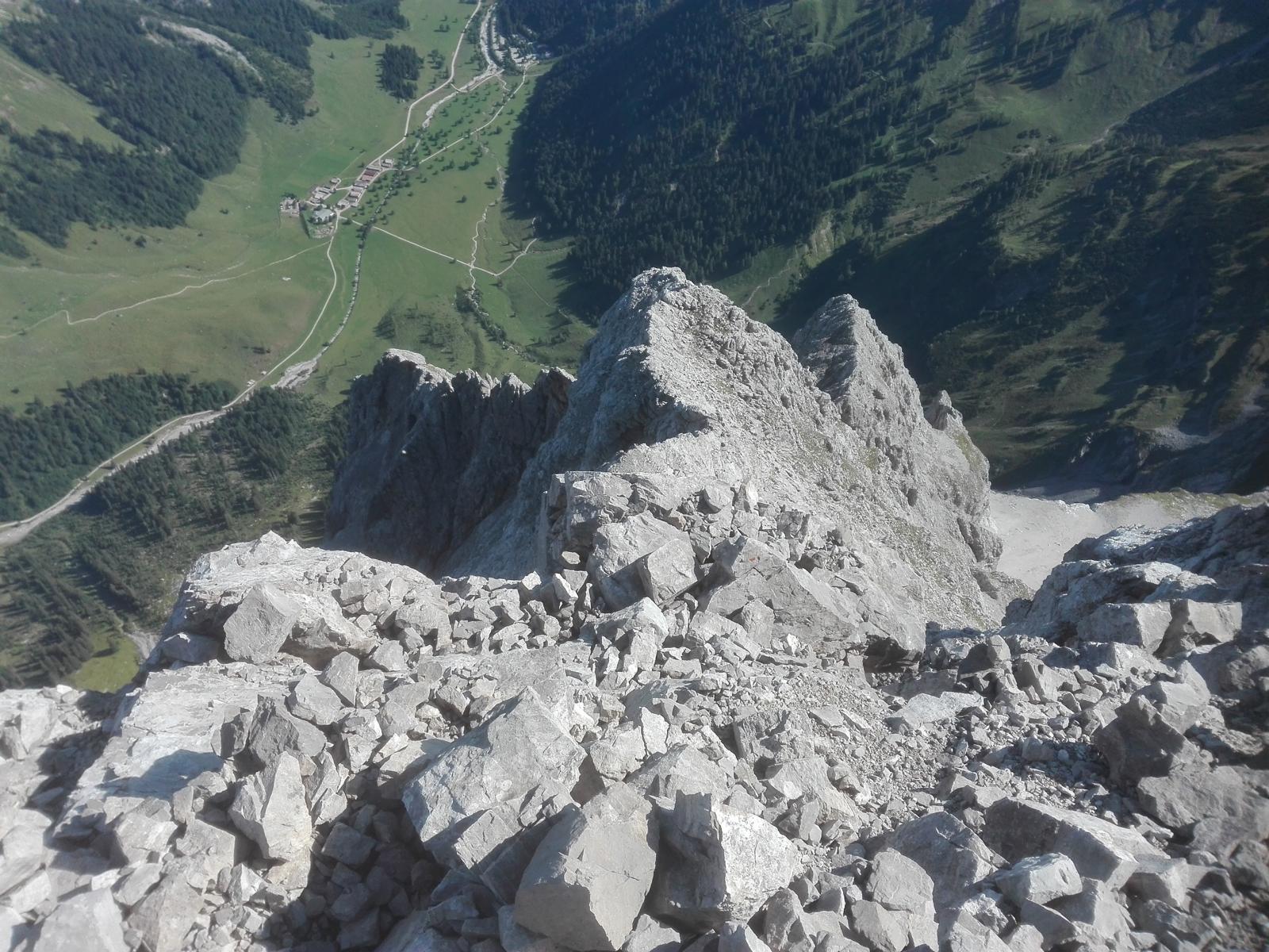 Gefahreneinschätzung: Hoch! Man bewegt sich stundenlang in brüchigem, schuttbedeckten, kleingriffigen Absturzgelände. Wirklich nur für erfahrende Karwendelkenner.