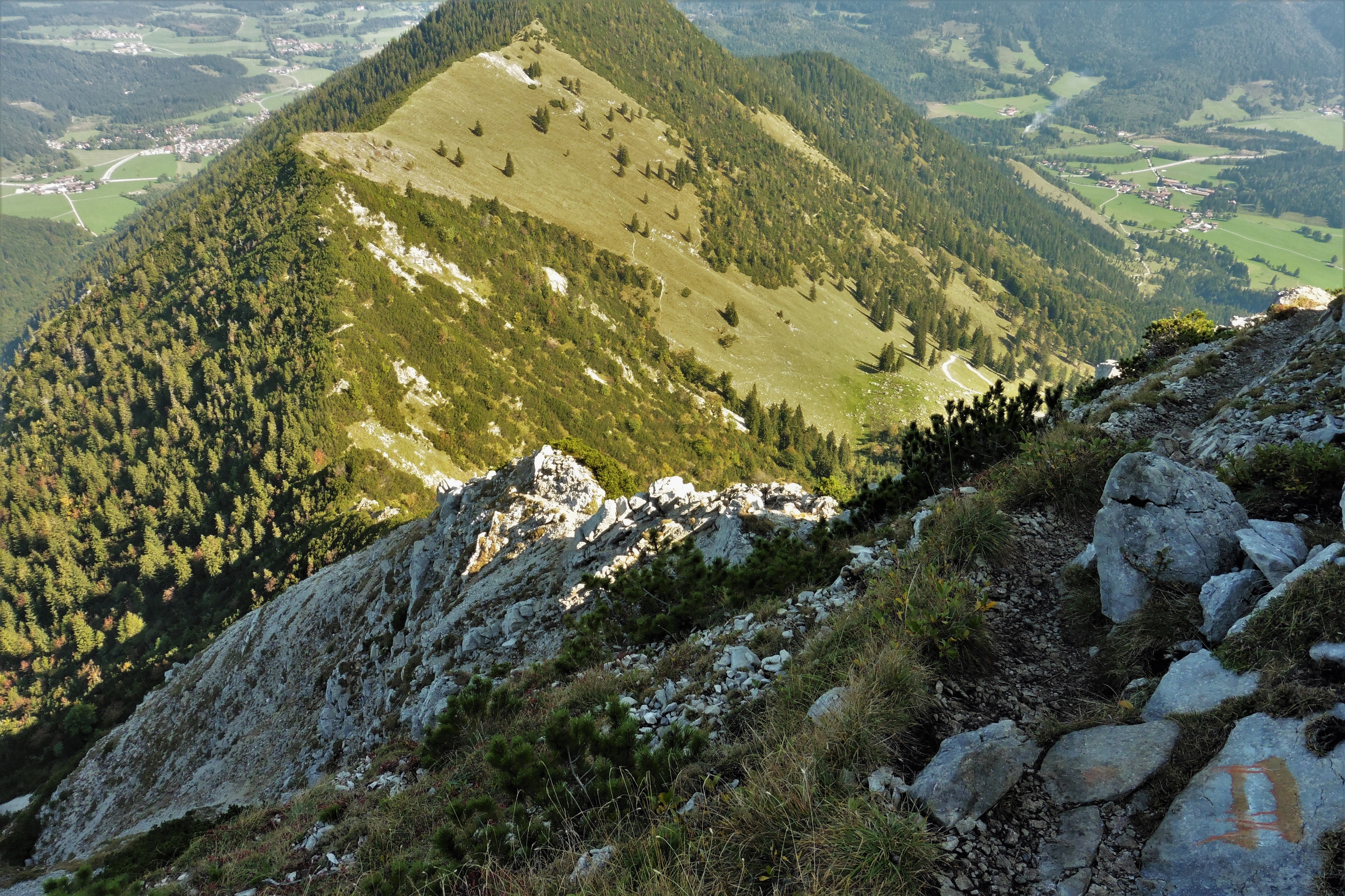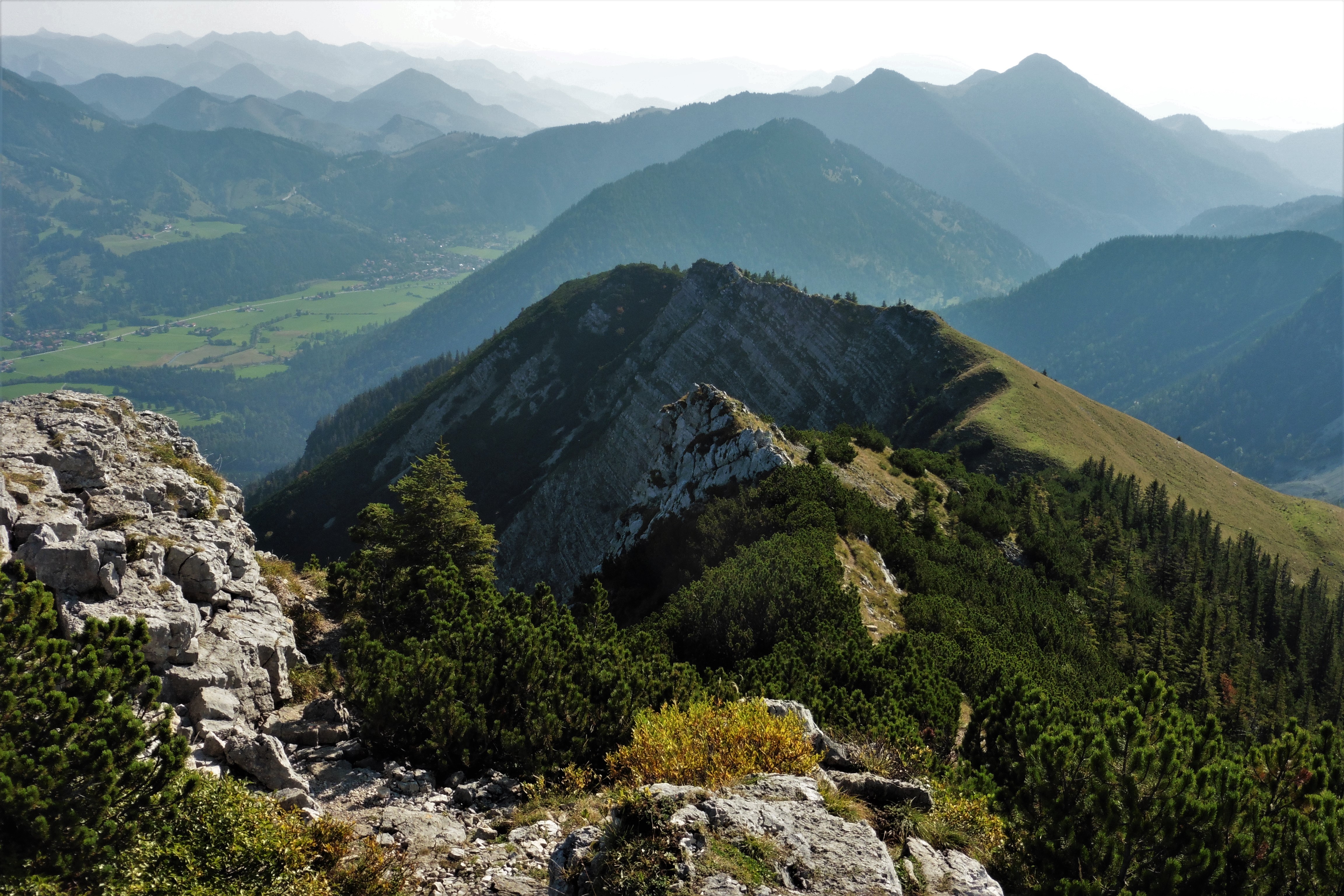Bild 9: Blick zurück; links Kleinmiesing, rechts der Aiplspitz mit dem Nordgrat;