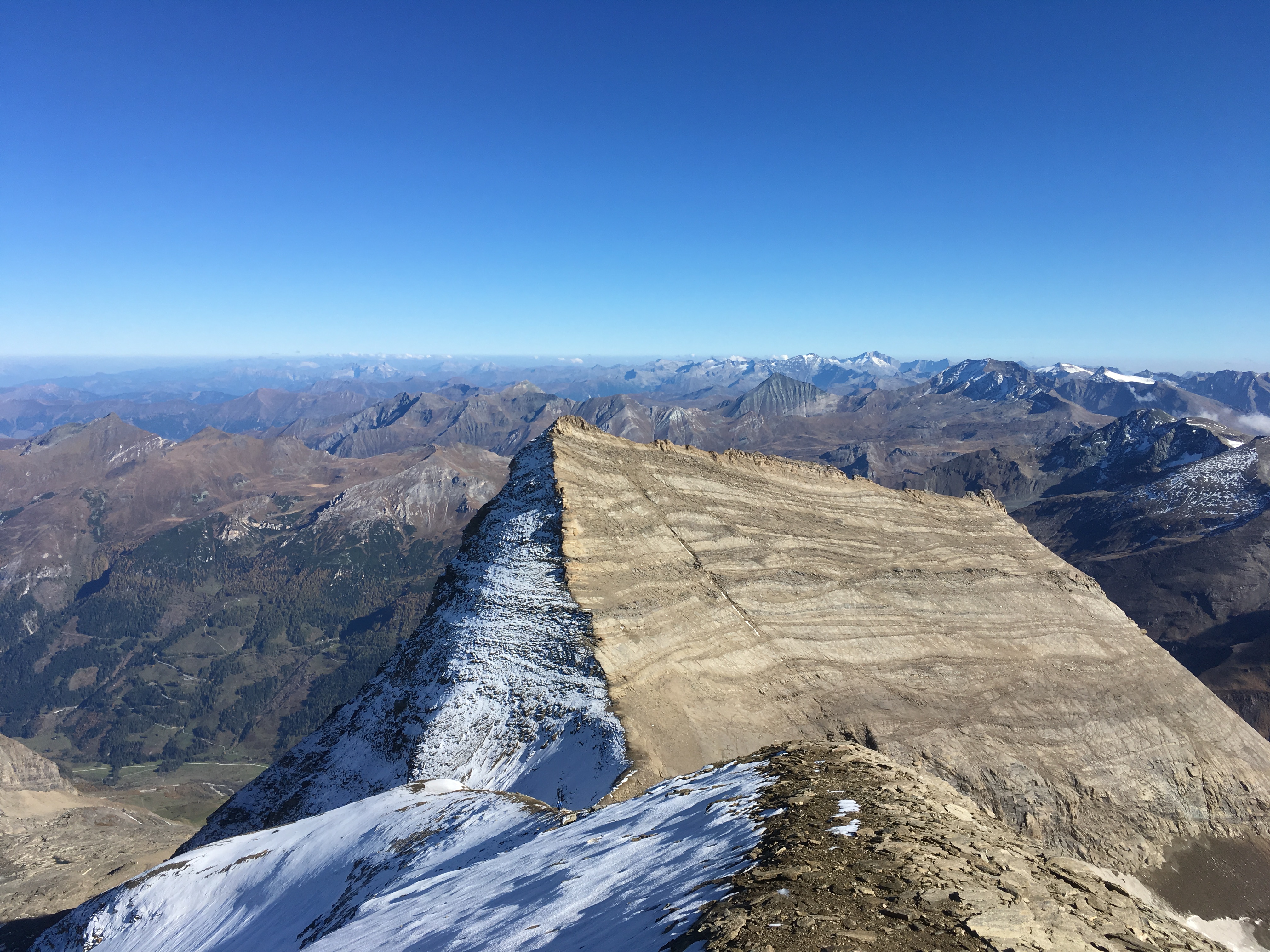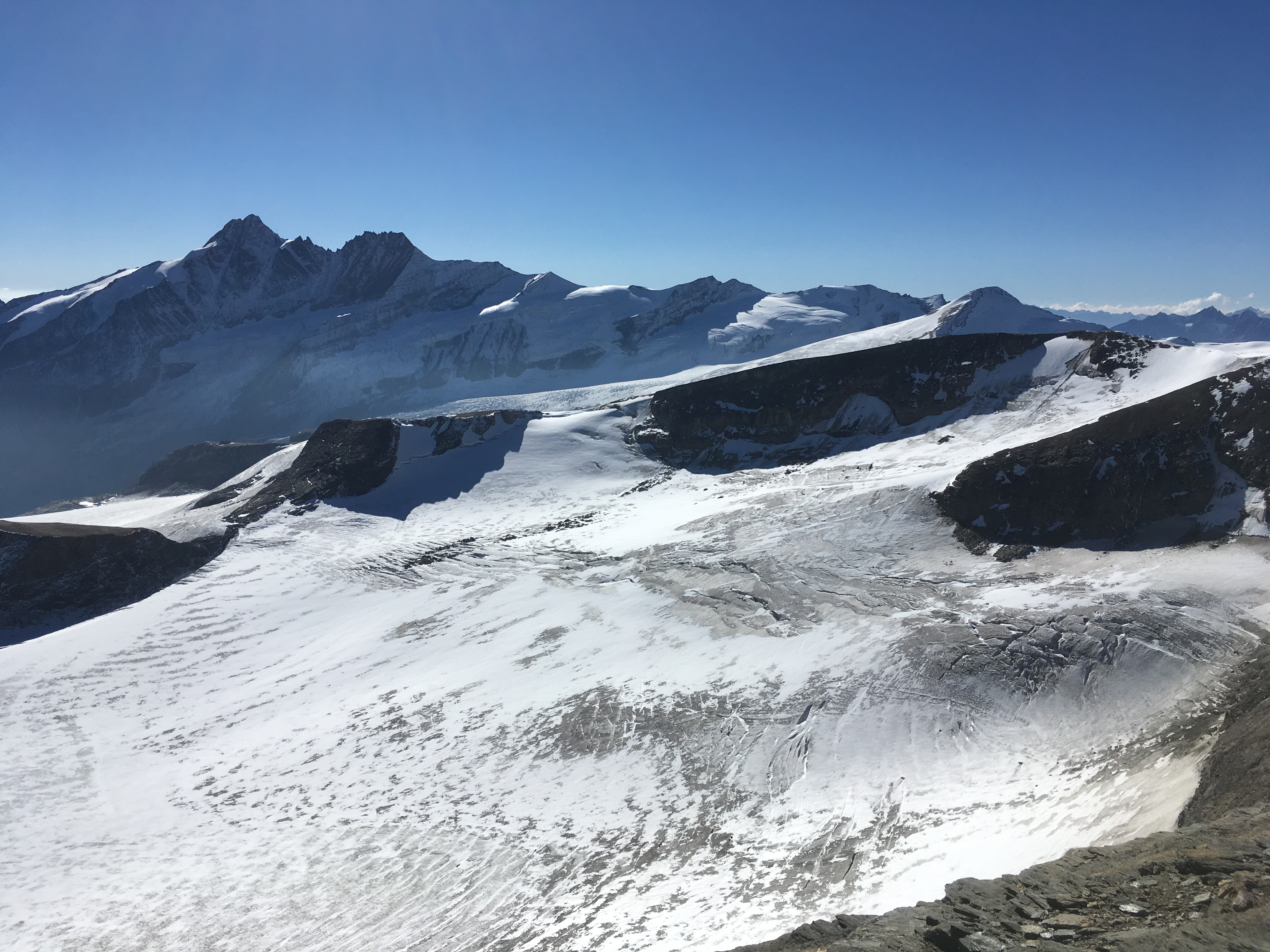 Ungeplante Erweiterung der eigentlich schon für sich genommen grandiosen Tour auf die Hohe Dock (Beschreibung auf www.bergsteigen.com). Traumwetter, außer am Gipfel (Wind) ziemlich warm. Die Überschreitung war natürlich ein echtes Highlight und sparte auch ordentlich Abstiegshöhenmeter (Normalroute auf die Hohe Dock ab Ferleiten ca. 2.250 Hm). Schön, dass sich diese Jahr noch einmal völlig ungeplant eine Hochtour ausging.