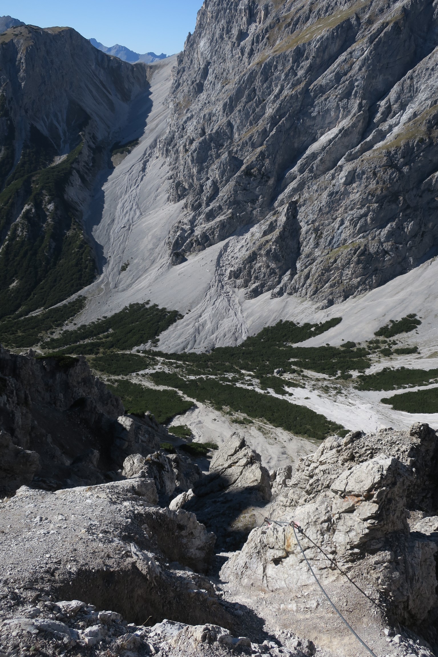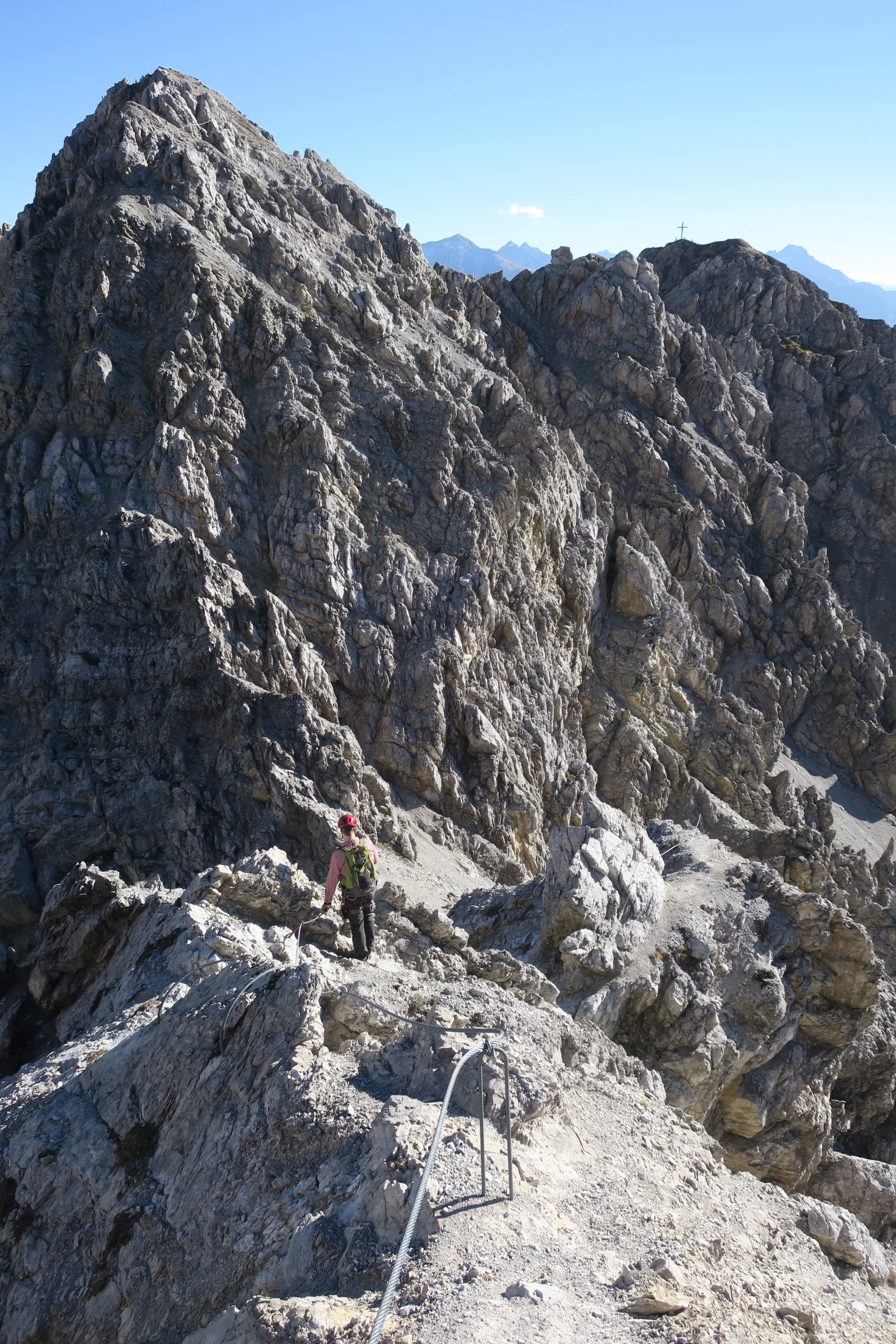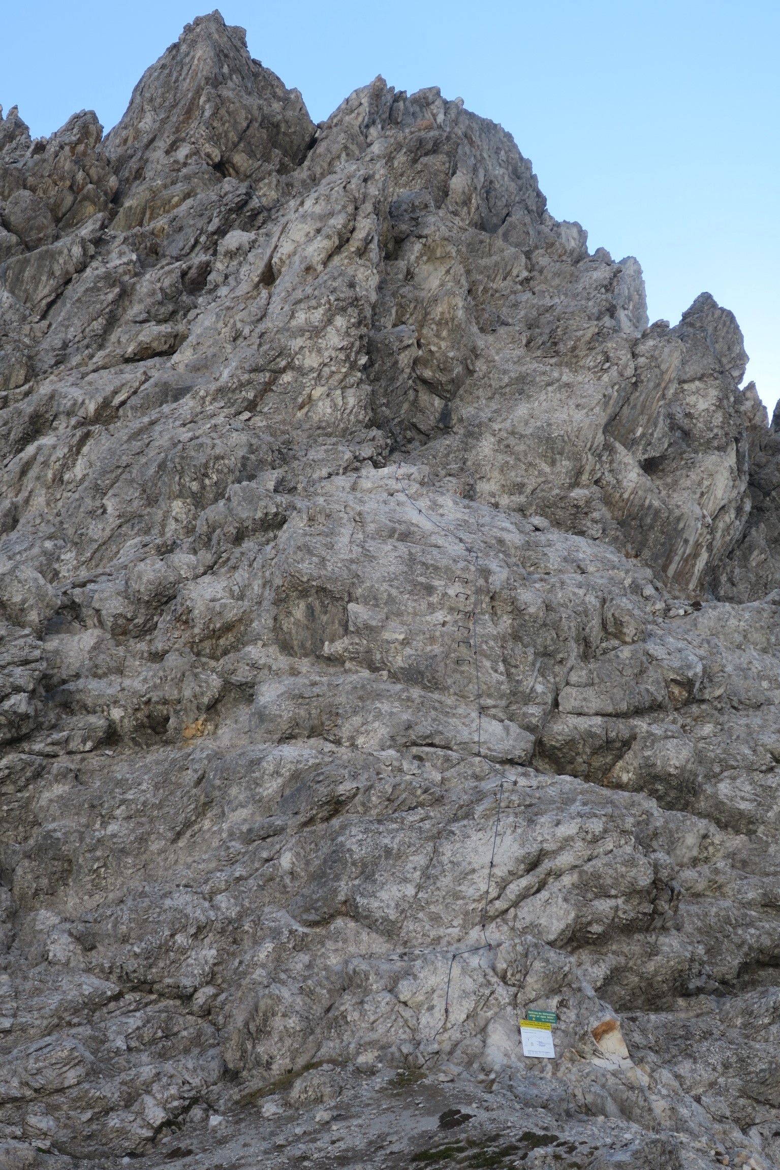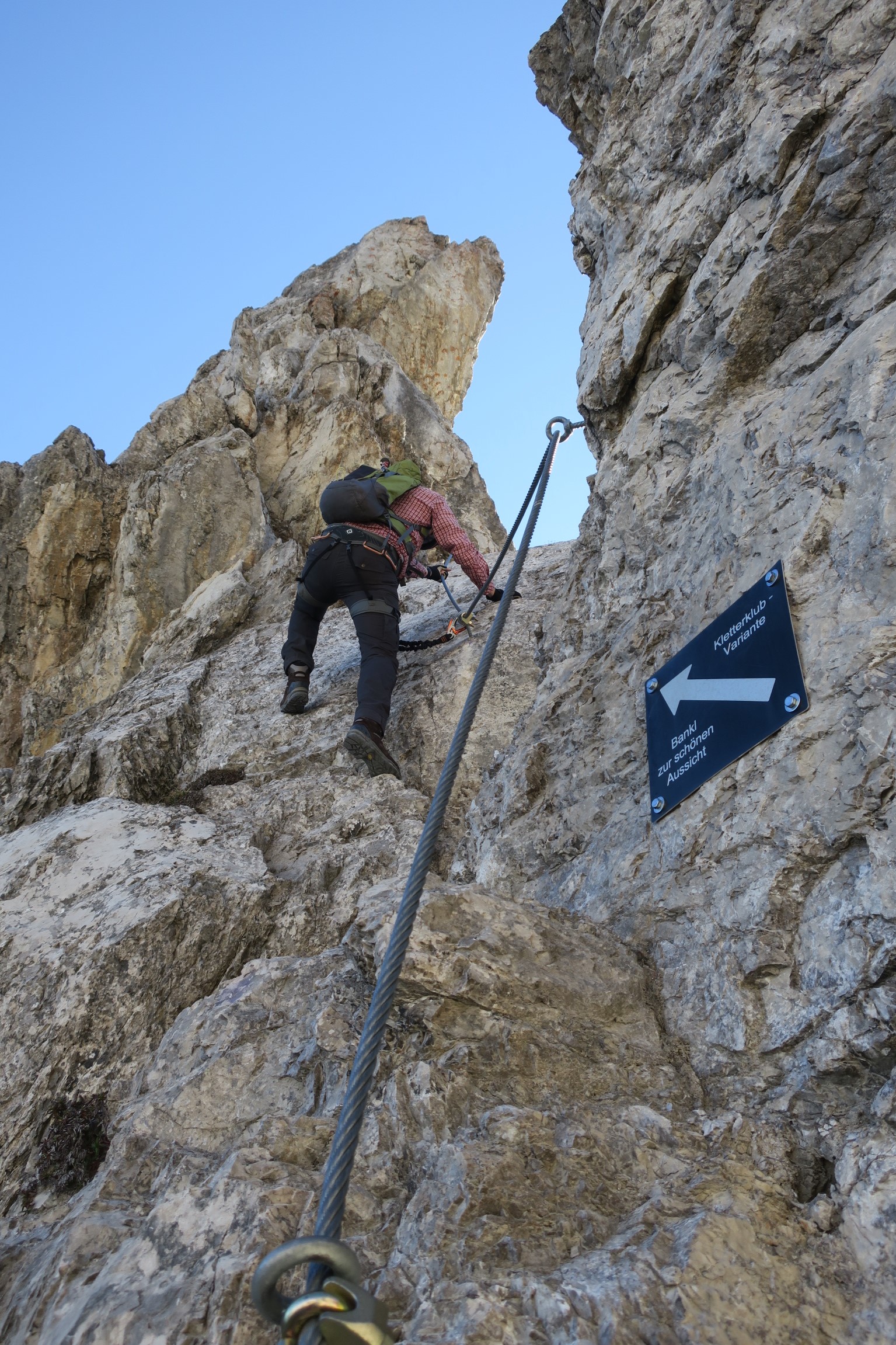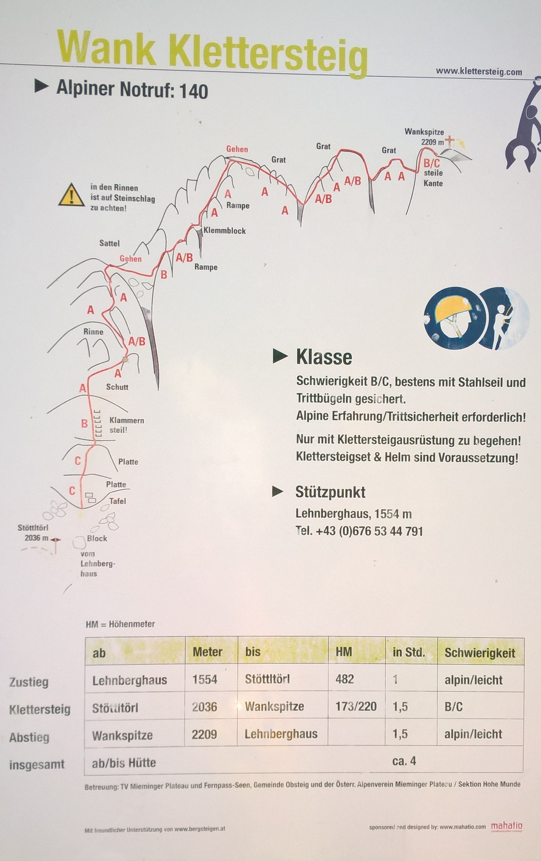 Gefahreneinschätzung: Steinschlaggefahr. Schwindelfreiheit und Trittsicherheit benötigt