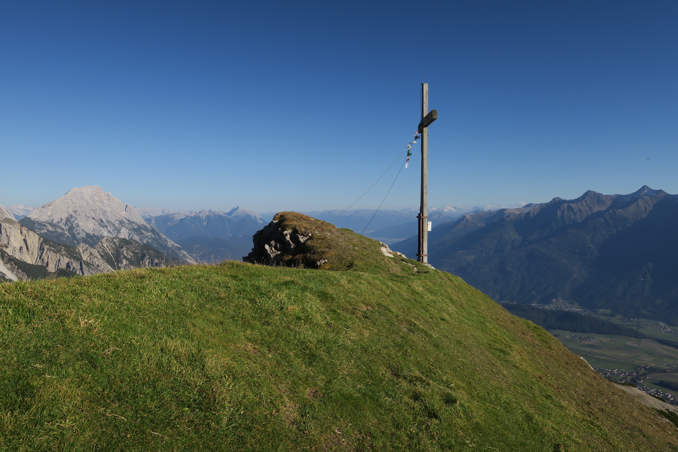 Gipfelkreuz und Hohe Munde im Hintergrund links