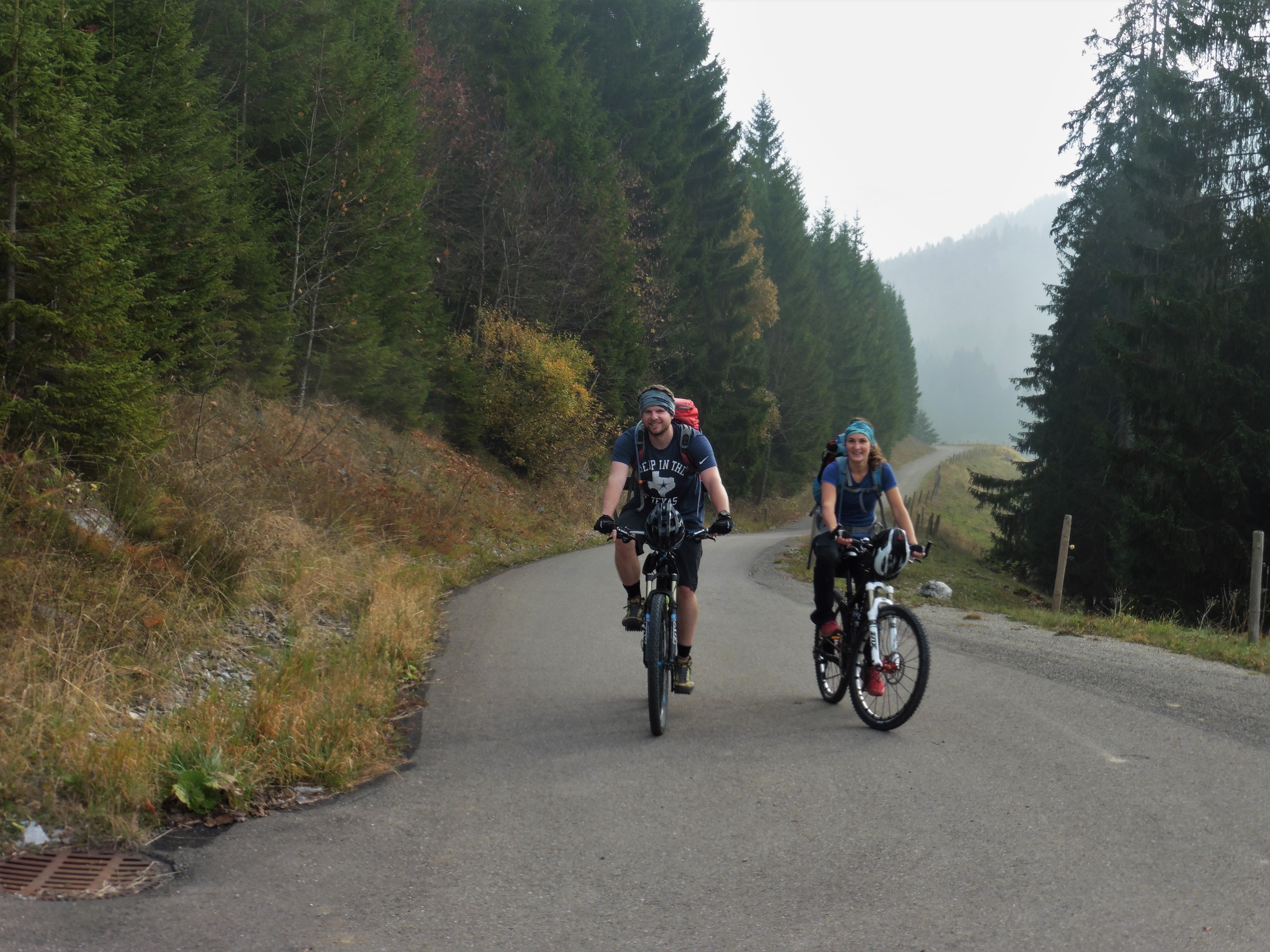 Tourenverhältnisse: waren ausgezeichnet; Radstrecke 450 Hm auf geteerter Almstraße bei mittlerer Steigung; dann noch ca. 400 Hm per pedes; am Gipfelaufbau kurzer, sehr gut versicherter Klettersteig; insgesamt 850 Hm;