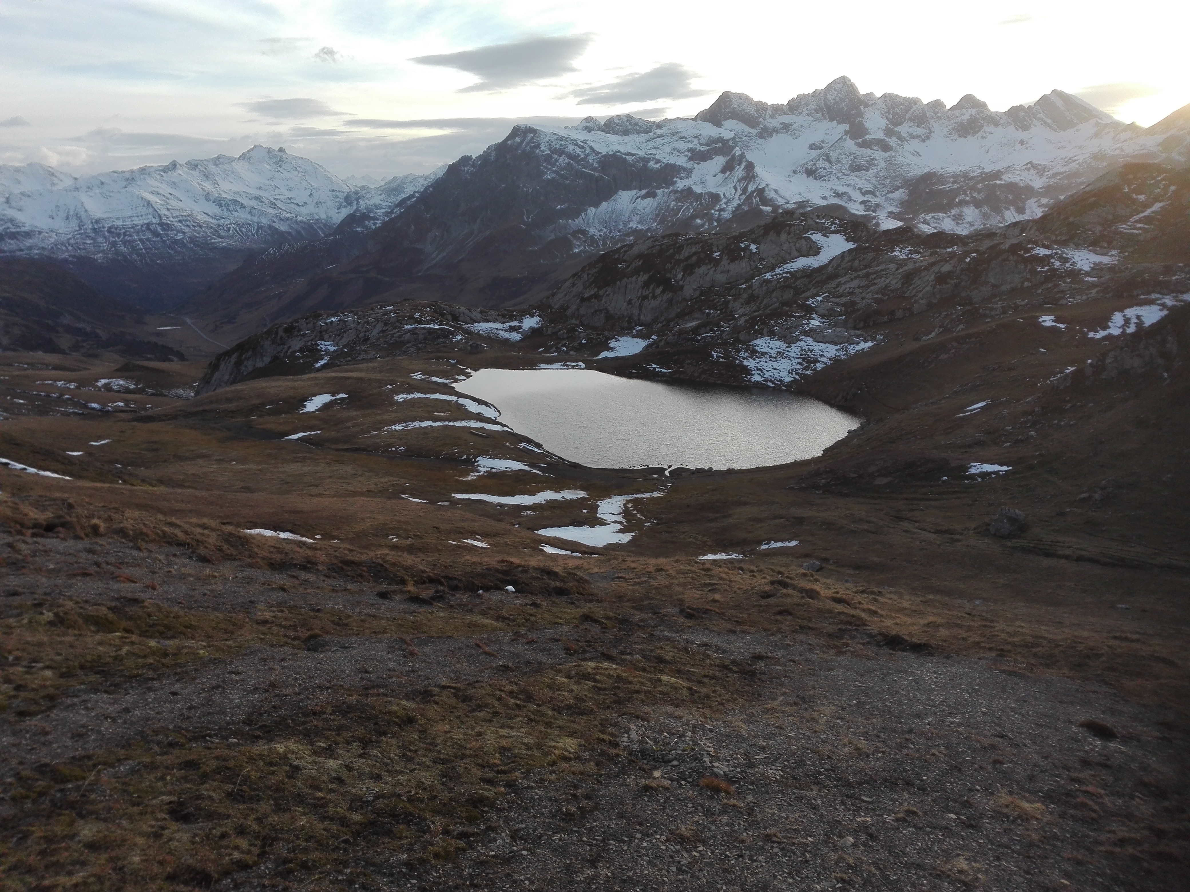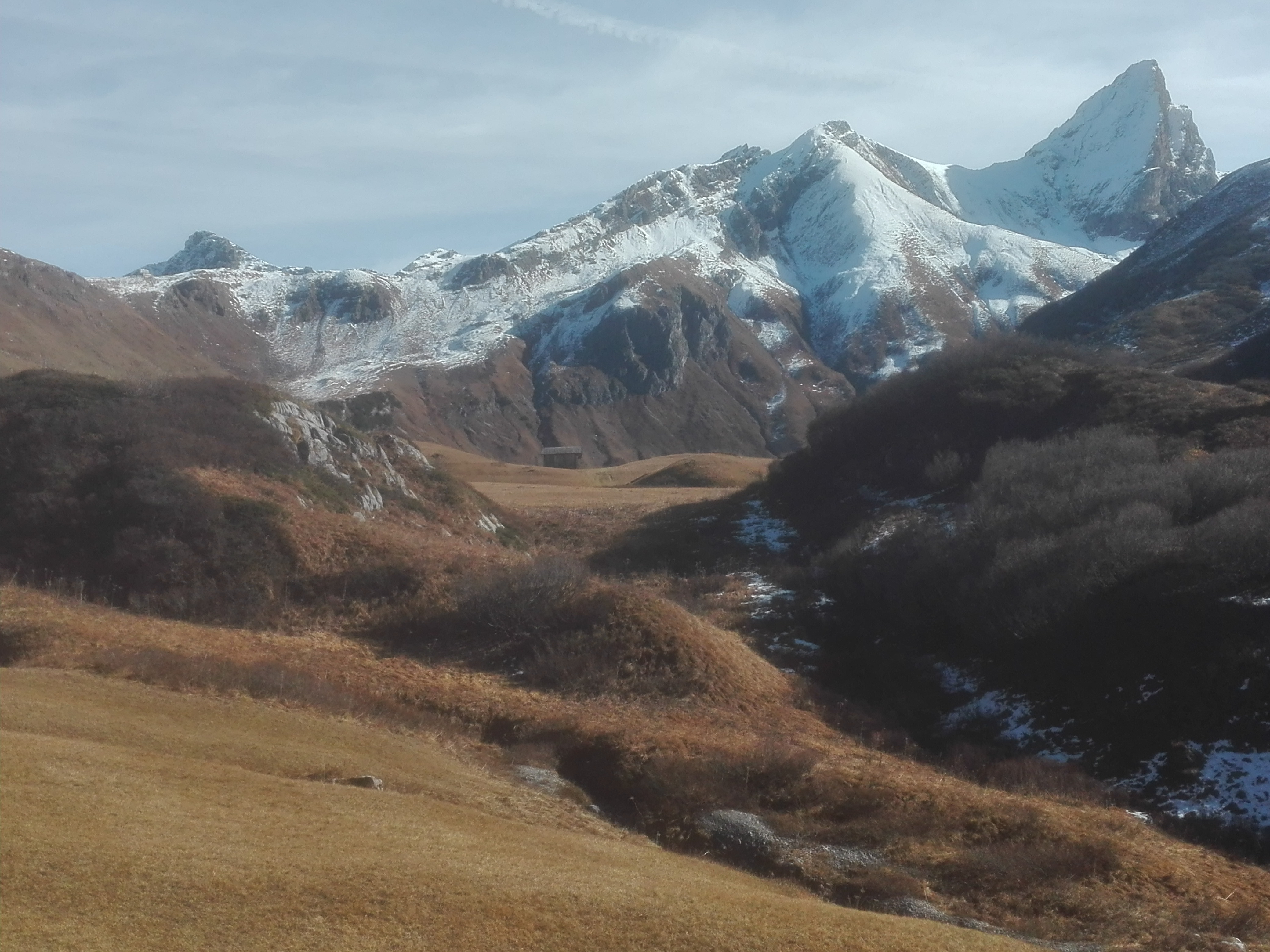 Tourenverhältnisse: Für Jahreszeit und Höhe recht gut. Von Zürs (1700m) über Südwesthänge schneefrei auf die Stuttgarter Hütte (2300m). Von hier auf markiertem Steig zunächst nordseitig durch Schnee - max. 10cm tief - ins Erlijoch und weiter - nun südseitig - auf die Fanggekarspitze.