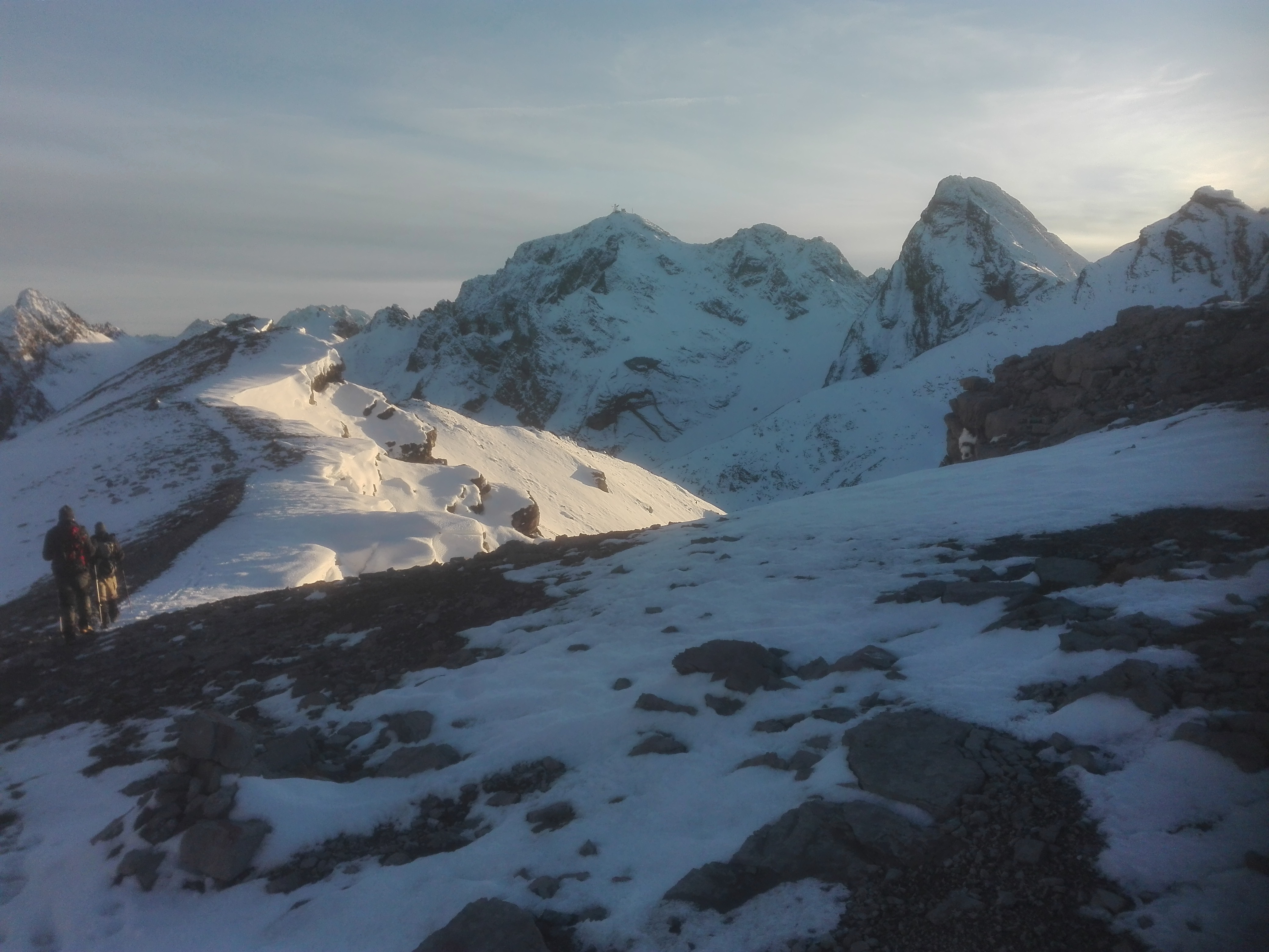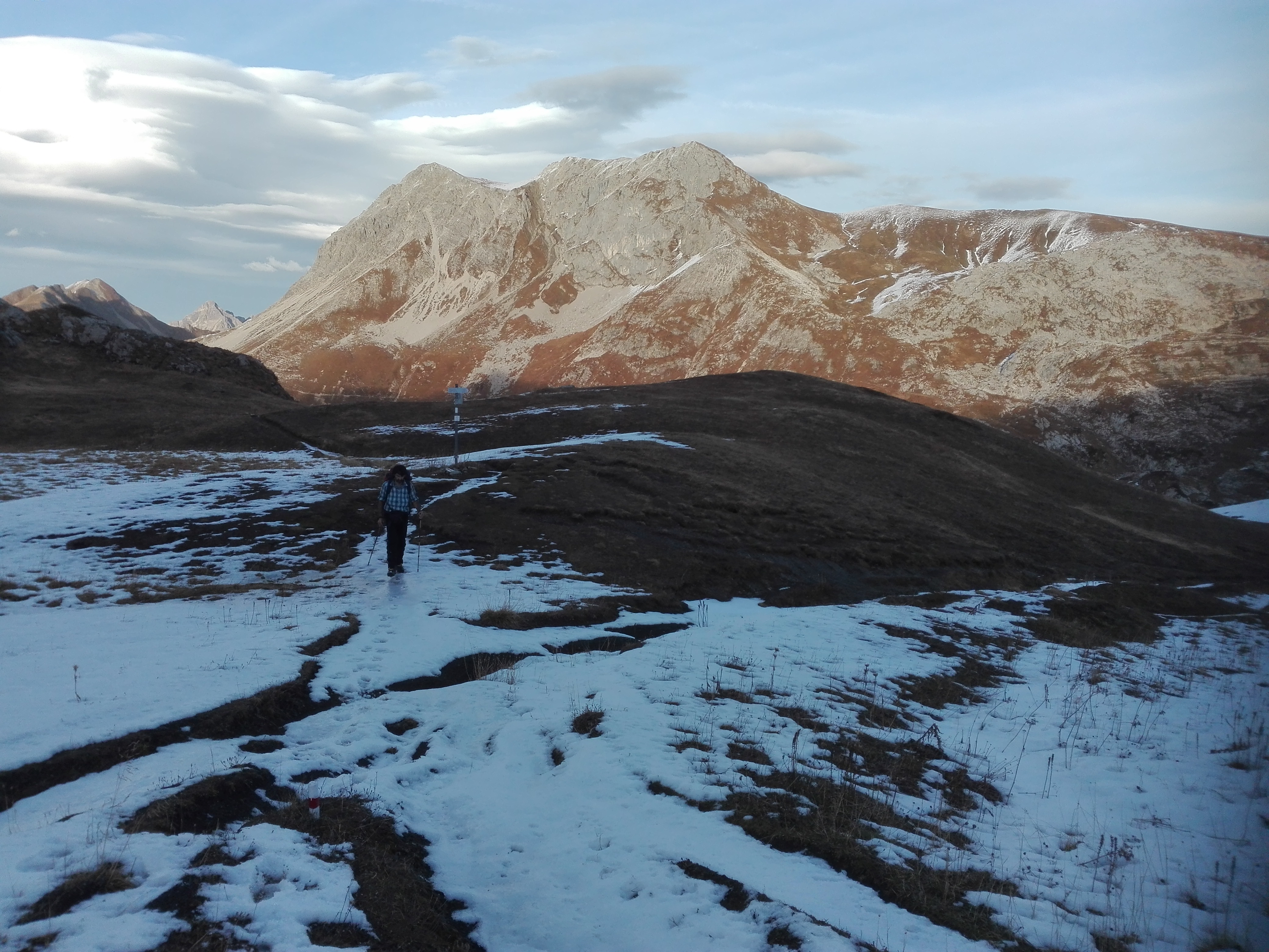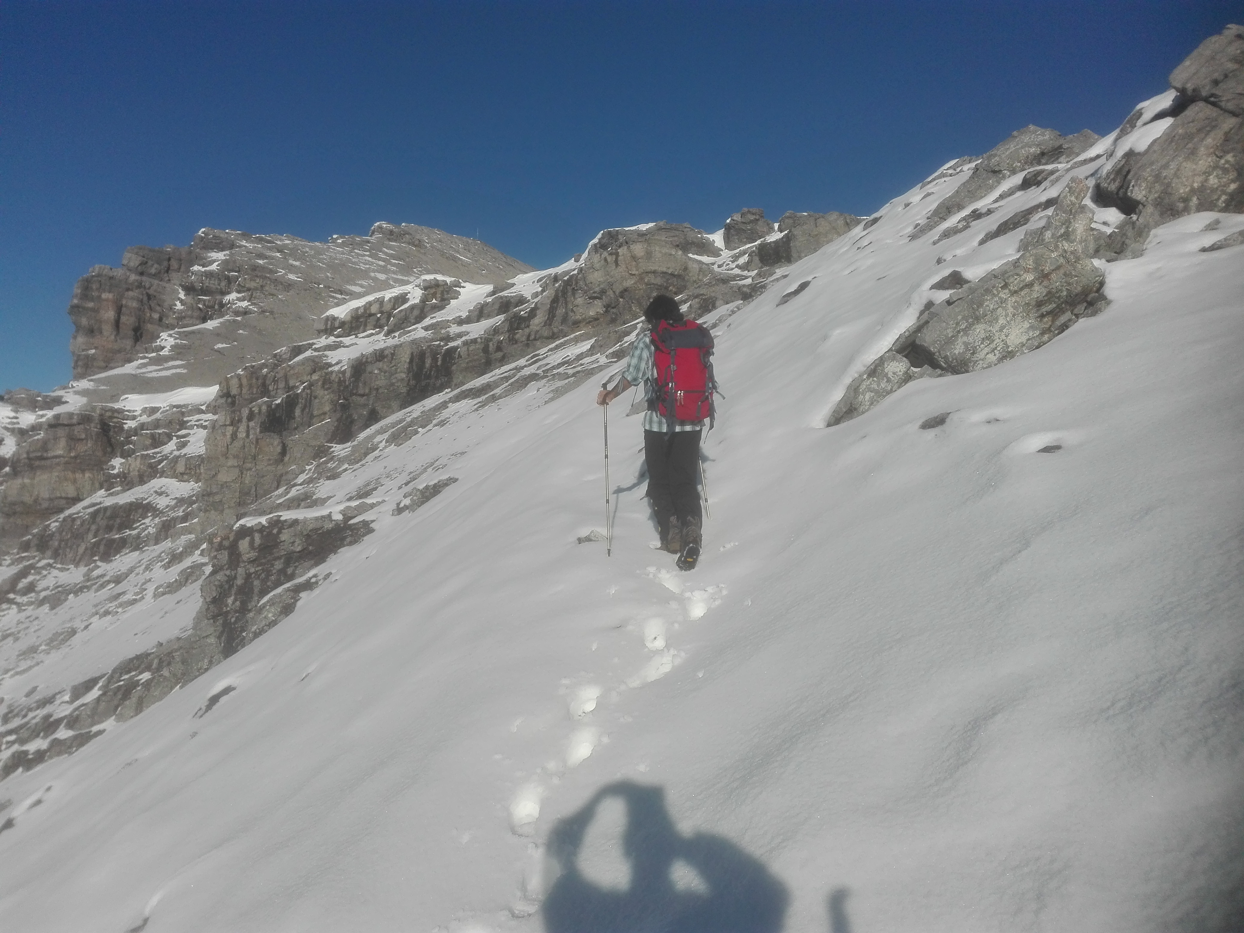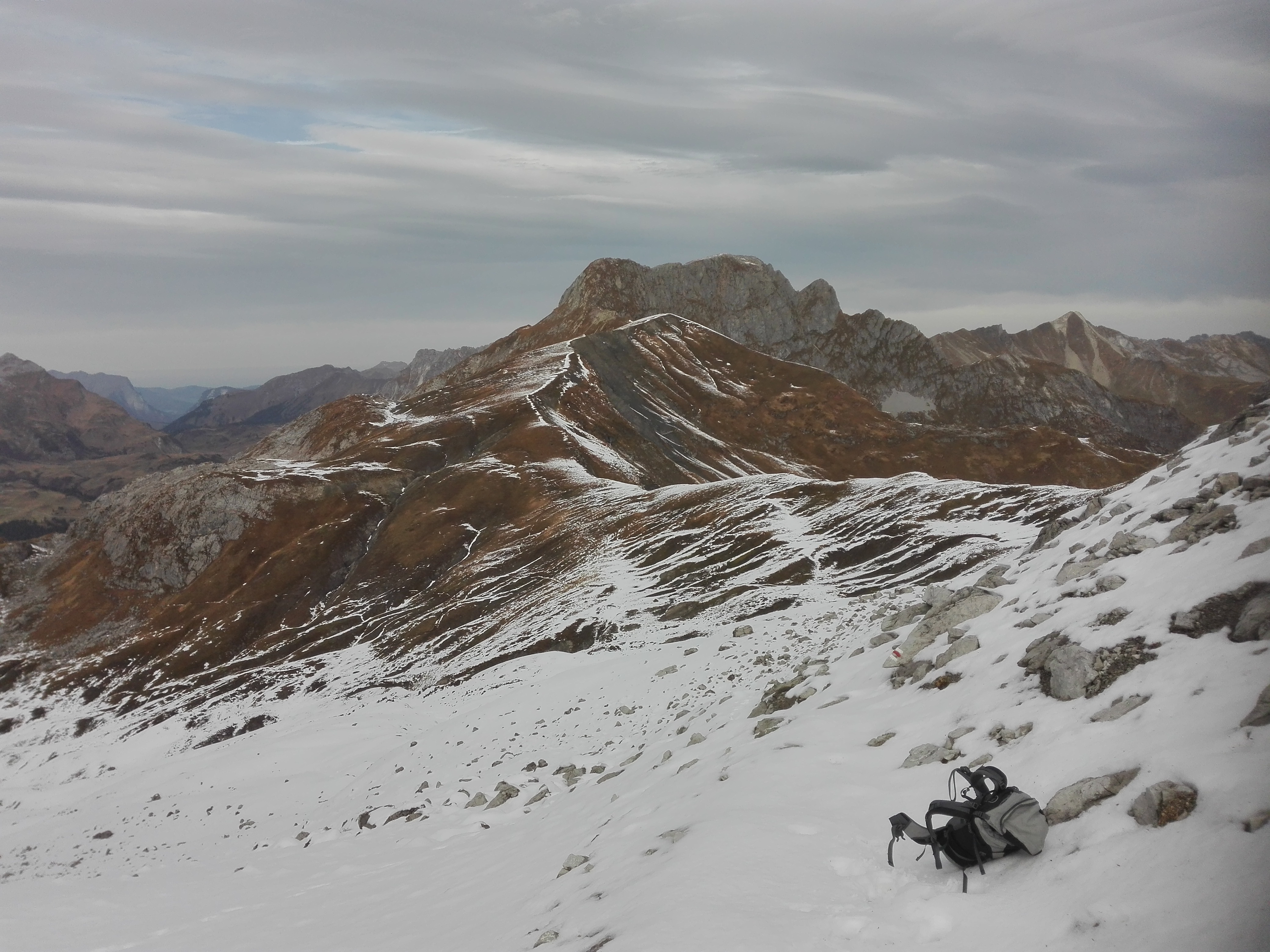 Nordseitig lag Schnee bis ca. 2100m, südseitig waren die Gipfel bis über 2500m völlig schneefrei, ostseitig ab etwa 2200m Schnee. Nirgends besonders viel, maximal etwa 10cm tief. Nicht störend, einzig am Gipfelgrat der Wösterspitzen erforderte der Schnee erhöhte Aufmerksamkeit.