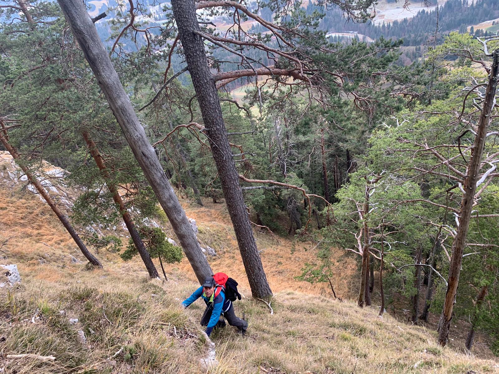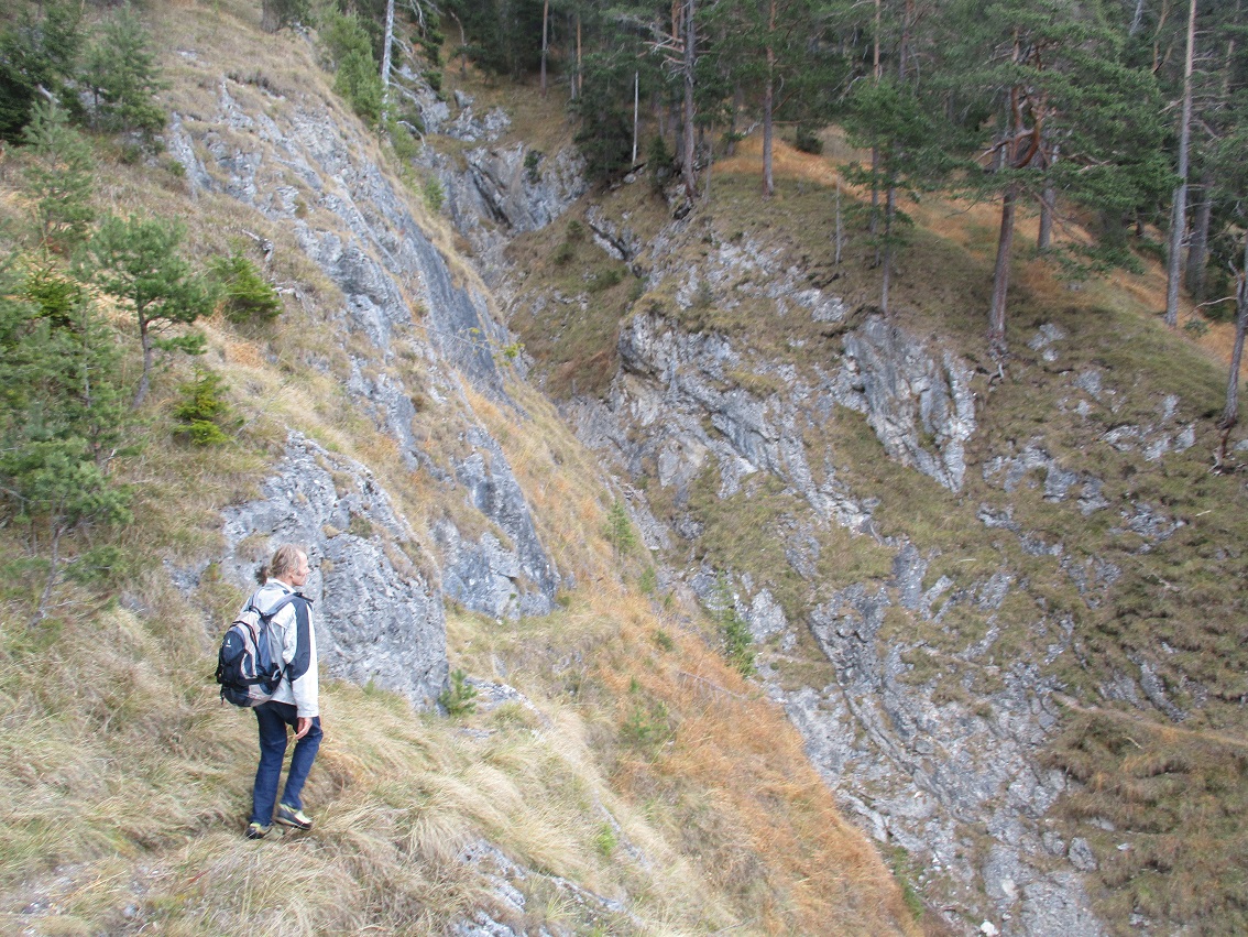 Gefahreneinschätzung: Steiles Gras- und Fels durchsetztes Gelände / auf den Wegen problemlos