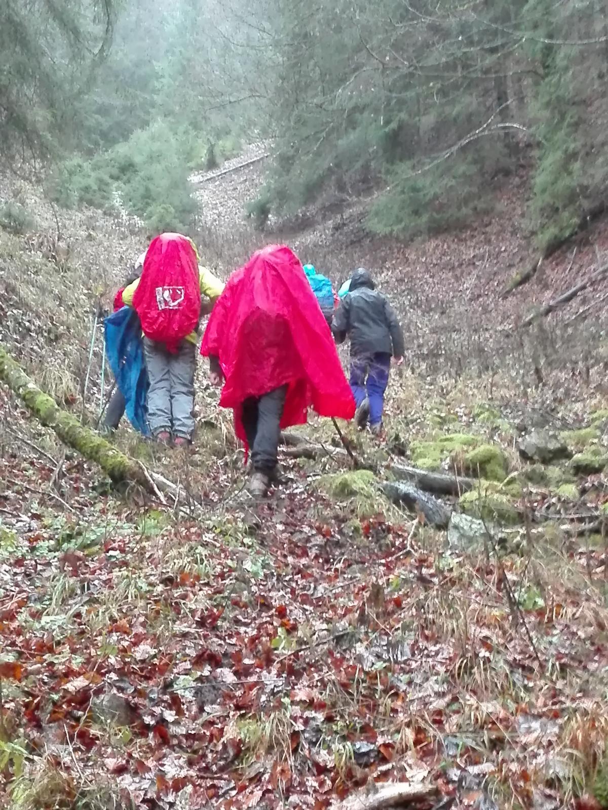 Tourenverhältnisse: Feucht, teilweise windig, einsam. Vom Parkplatz auf dem Steig durch die Steckenbergklamm, bis man auf die Forststraße kommt. Nach wenigen Metern auf der Straße rechts über eine Brücke und über unmarkierte Steigspuren, teilweise auch weglos, zum Schartenköpfl. Von dort über den breiten, meist bewaldeten, Rücken nach Süden und rüber zum (baumfreien) Rosengarten und weiter über den hier freien Rücken, nun nach Westen, zum Bremeneck. Von hier nach Süden zum Ende einer Forststraße nahe P.1399m und weiter zur Kuhalm. Von der Alm auf der Forststraße zurück zum Parkplatz.