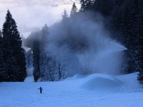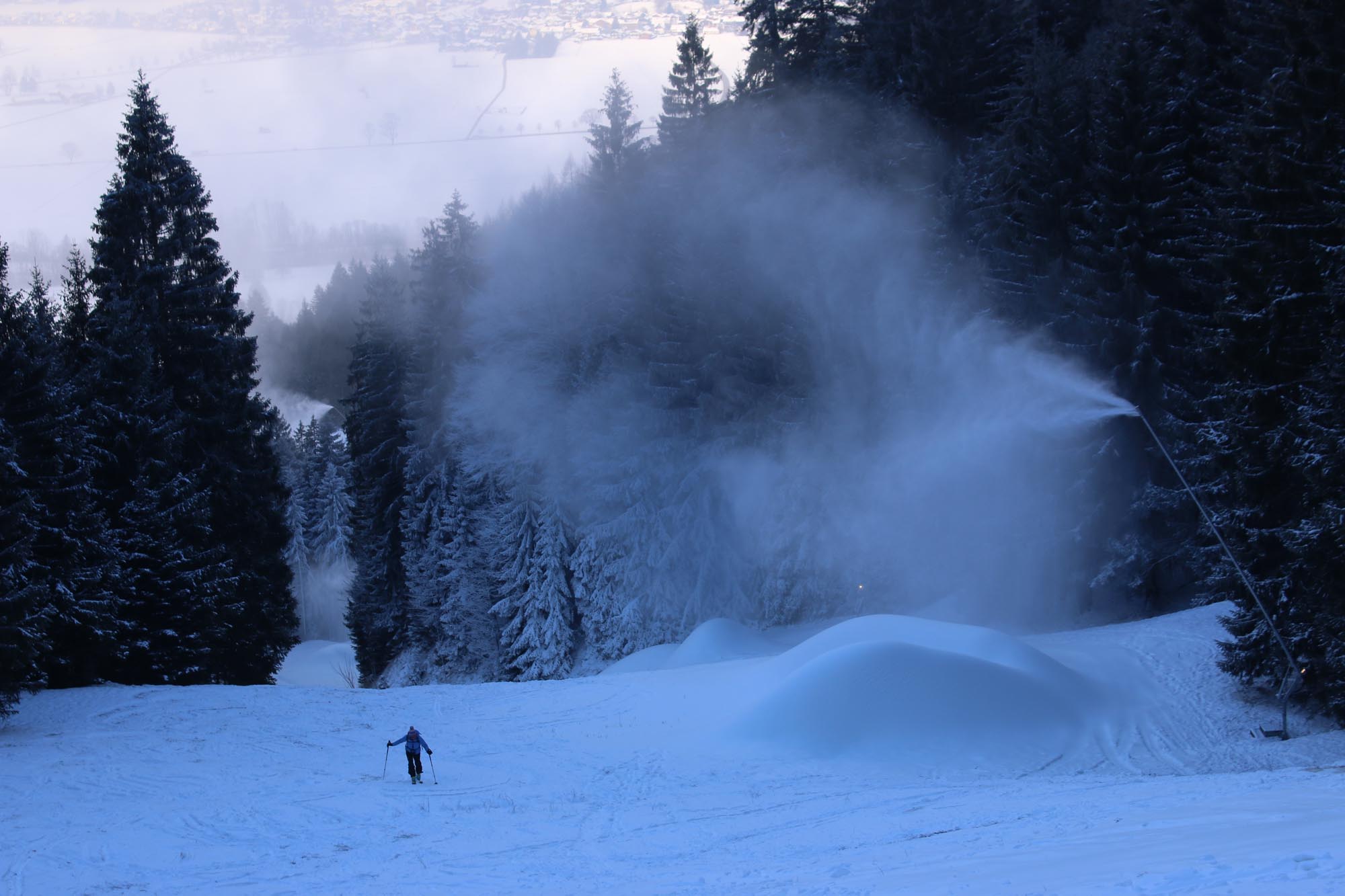 Tourenverhältnisse: Aufstieg auf der Piste im unteren Teil gerade so machbar. Schneeanonen liefen auf Hochtouren. Schneeberge waren noch nicht verteilt, von daher Aufstieg zumeist auf Naturschnee.