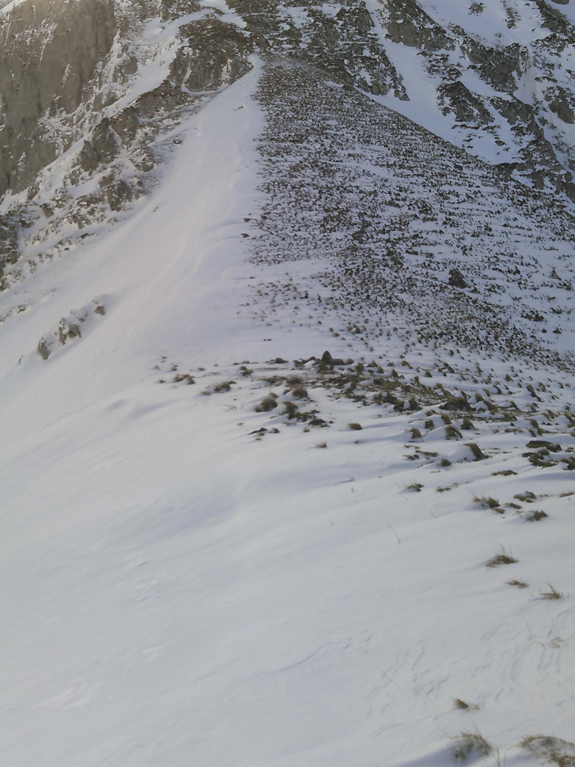 Westseitig abgeblasen, ostseitig kammnah etwas mehr Schnee