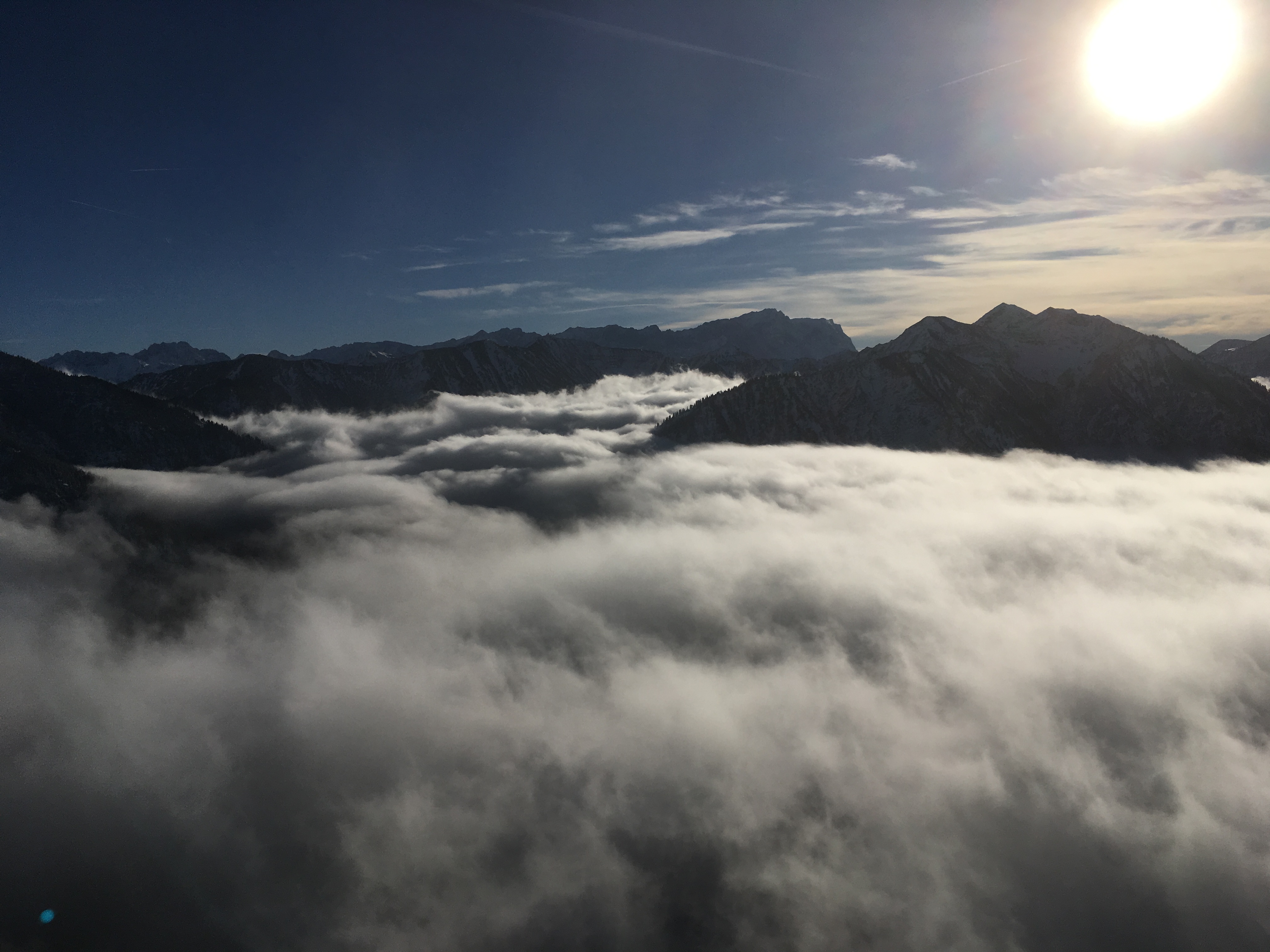 Wenige Höhenmeter höher oberhalb des Nebels (allerdings Nebelgrenze später aufsteigend):