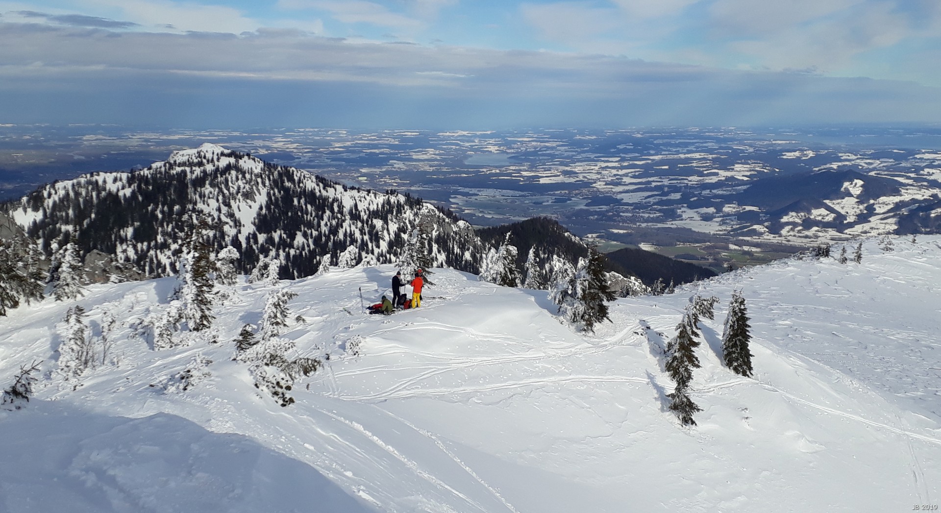 Gefahreneinschätzung: keine, wenn man auf der Piste bleibt. Auch der Hang unter der Lacherspitze ist unter 30 Grad.