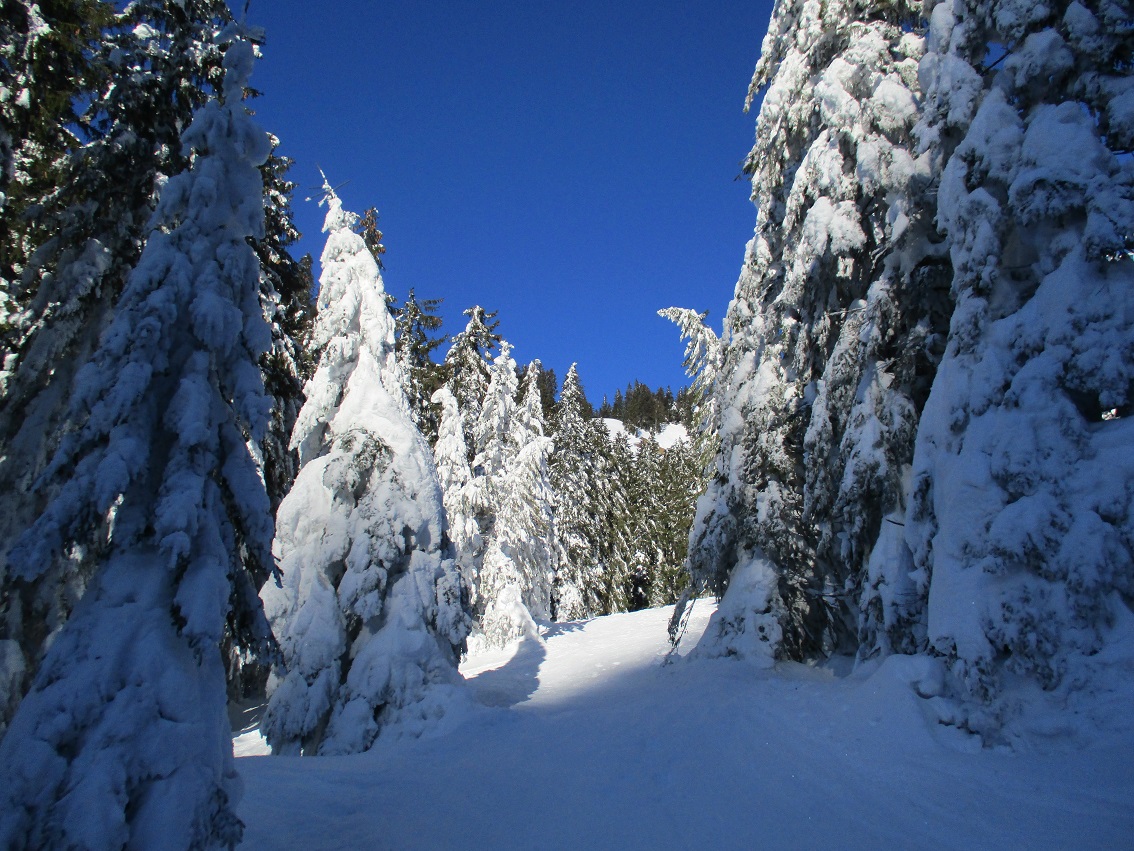 Tourenverhältnisse: Sehr gut / genug Schnee / Standardabfahrt pistenmäßig eingefahren - man findet aber noch schöne Pulverhänge