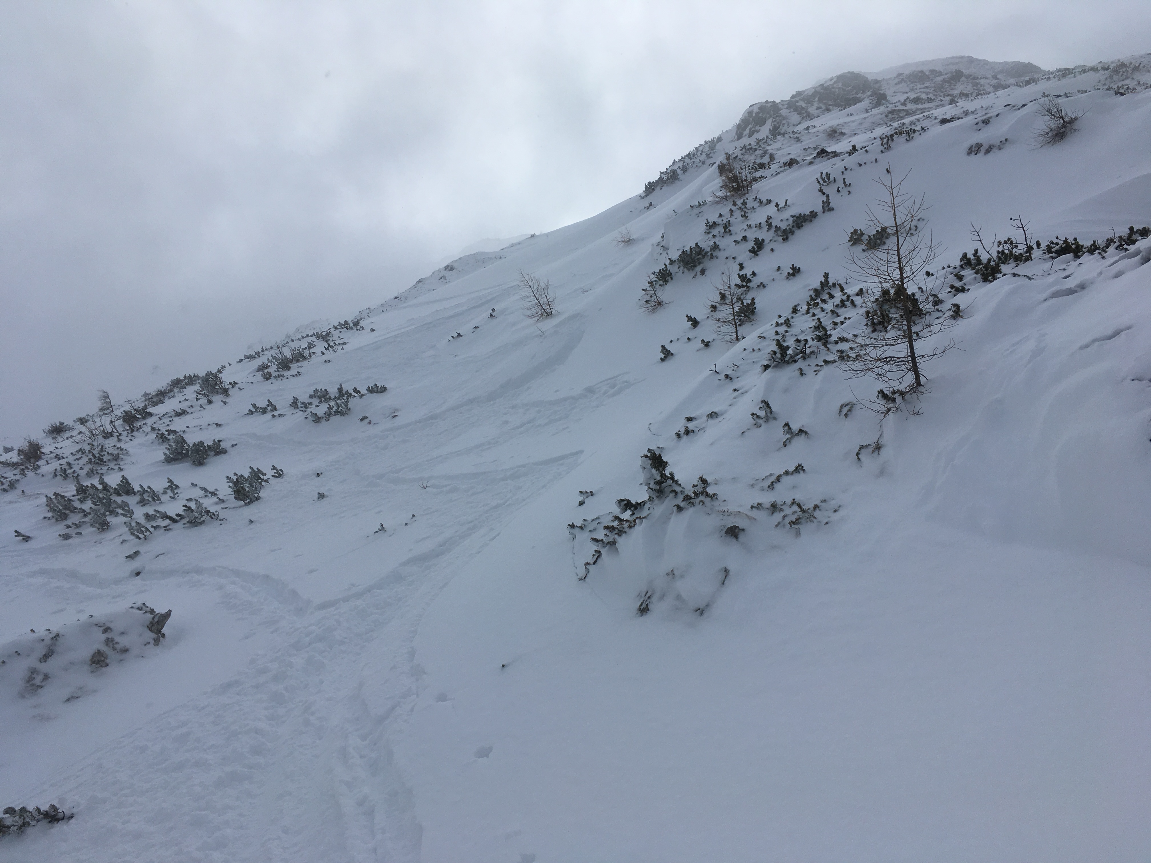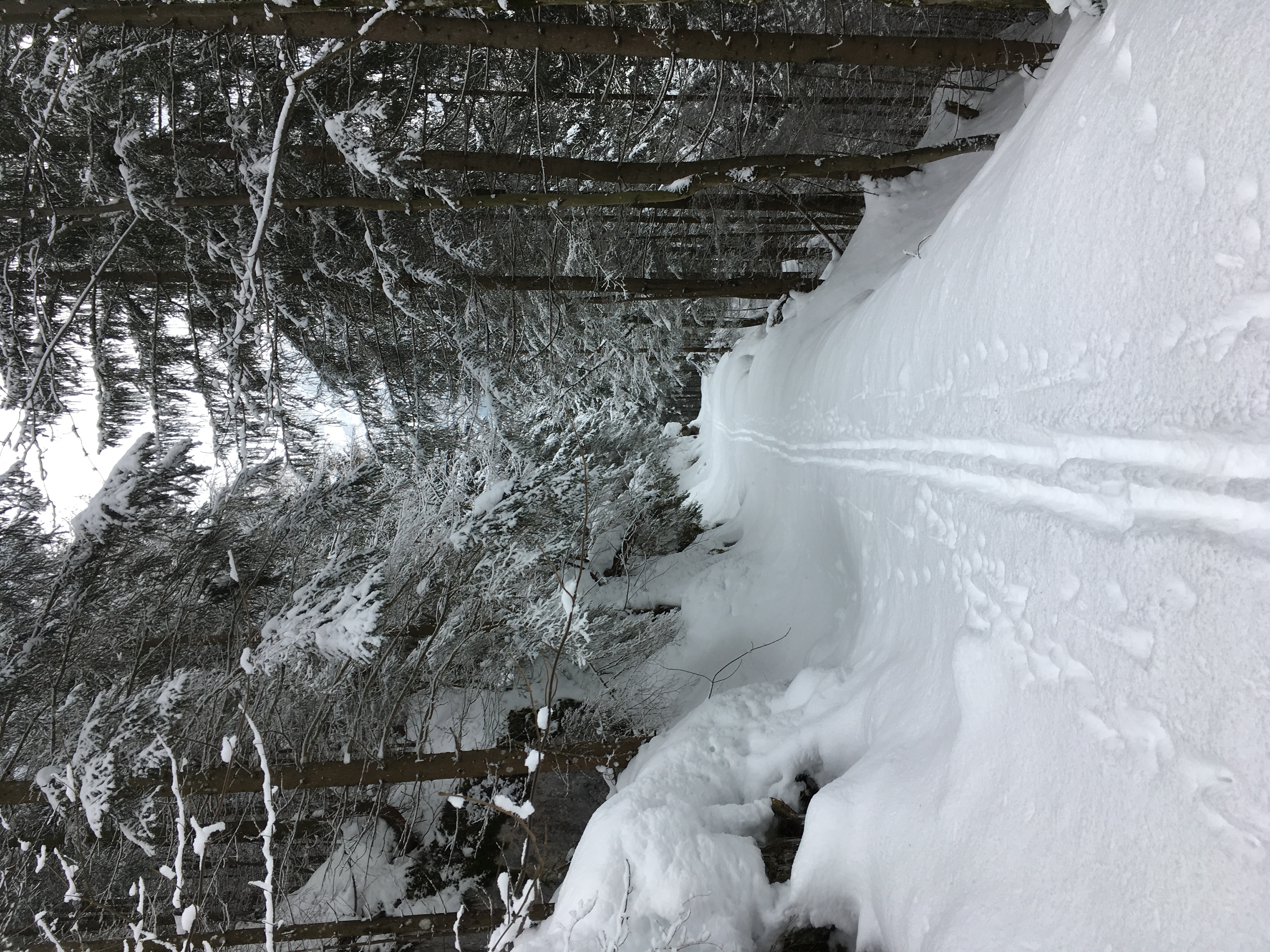 Sonstiges: Am Freitag, den 25.01.2019 ging es auf eine eher ungewöhnliche Tour in den Berchtesgadener Alpen - der Steinberg, ein Vorgipfel zur Schärtenspitze im Hochkalterstock. Ab dem Ausgangspunkt war zu meiner Überraschung alles zu spuren, nicht einmal ältere spuren gab es. Bis zur Schärten-Alm im Wesentlichen auf dem Weg (ein paar Mal Bäume / Äste, aber nicht weiter tragisch), dann durch den Wald direkt oberhalb der Alm ansteigend. Oben soll man sich nach der Beschreibung im Internet jeweils eher links halten - ich habe es gemacht, nach der Karte ist das aber eher unlogisch. Ab ca. 1.700 m zeigten sich Lawinenwarnzeichen - Risse in der Schneedecke, abgleitende Schollen etc. Jeweils neben den Triebschneehängen gab es sehr hart gefrorene schneearme Stellen. Da der letzte Hang zum Gipfel sehr steil ist und wahrscheinlich auch eingeblasen gewesen wäre, habe ich sicherheitshalber auf ca. 1.930 m umgedreht. Meines Erachtens hat die ausgegebene geringe Gefahrenstufe vor Ort nicht die Realität wiedergespiegelt. Die Abfahrt war natürlich ein Pulvertraum - bei soviel Schnee macht es im Wald einfach nur Spaß.