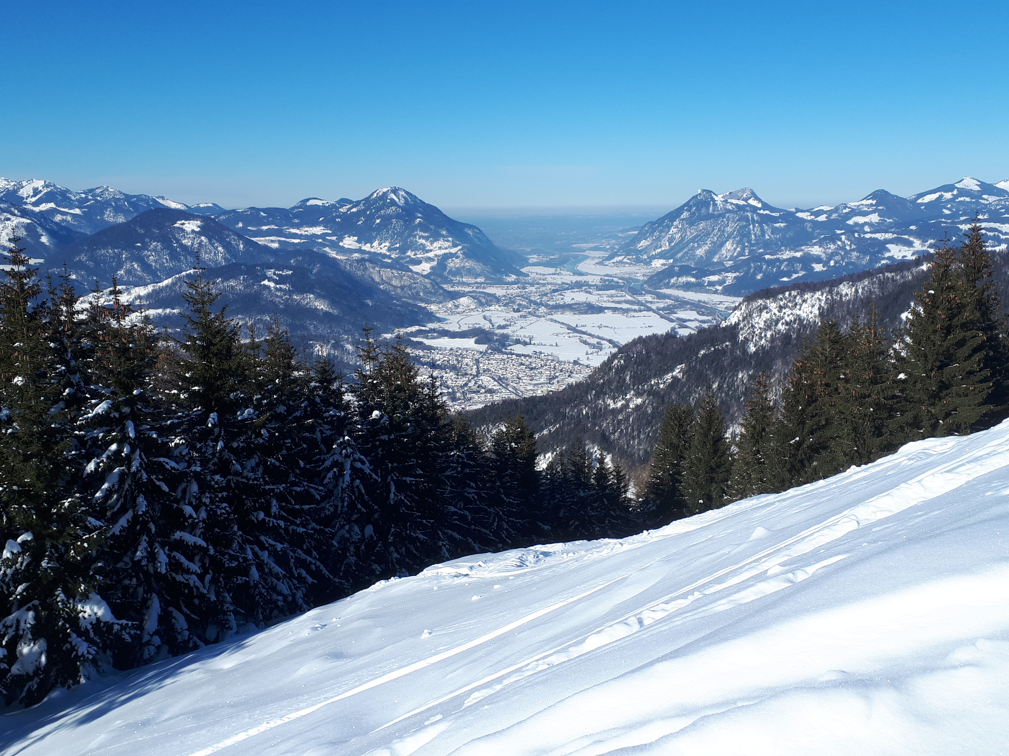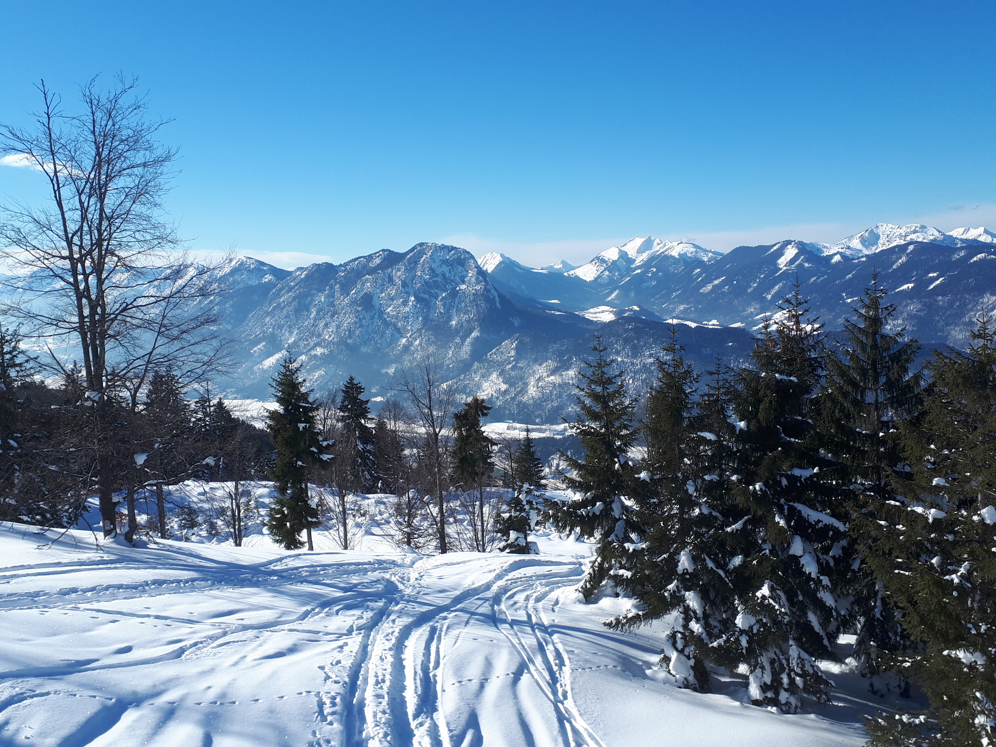 Tourenverhältnisse: genügend Schnee vom Parkplatz weg. Die steileren Abschnitte waren aber eine richtige Buckelpiste.