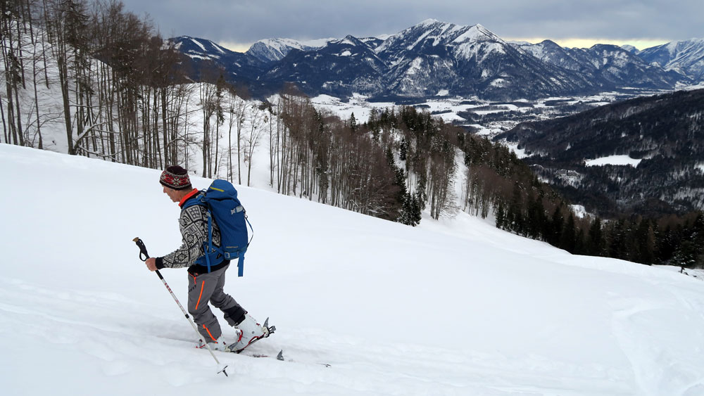 Tourenverhältnisse: Schneemenge perfekt für diese kleine, wunderschöne Spritztour im Schatten des Sparber. Während es beim Aufstieg noch sehr schön pulvrig war, war es bei der Abfahrt gegen 11.30 Uhr bereits recht schwerer Schnee. Es wurde recht warm unter dem bewölktem Himmel....