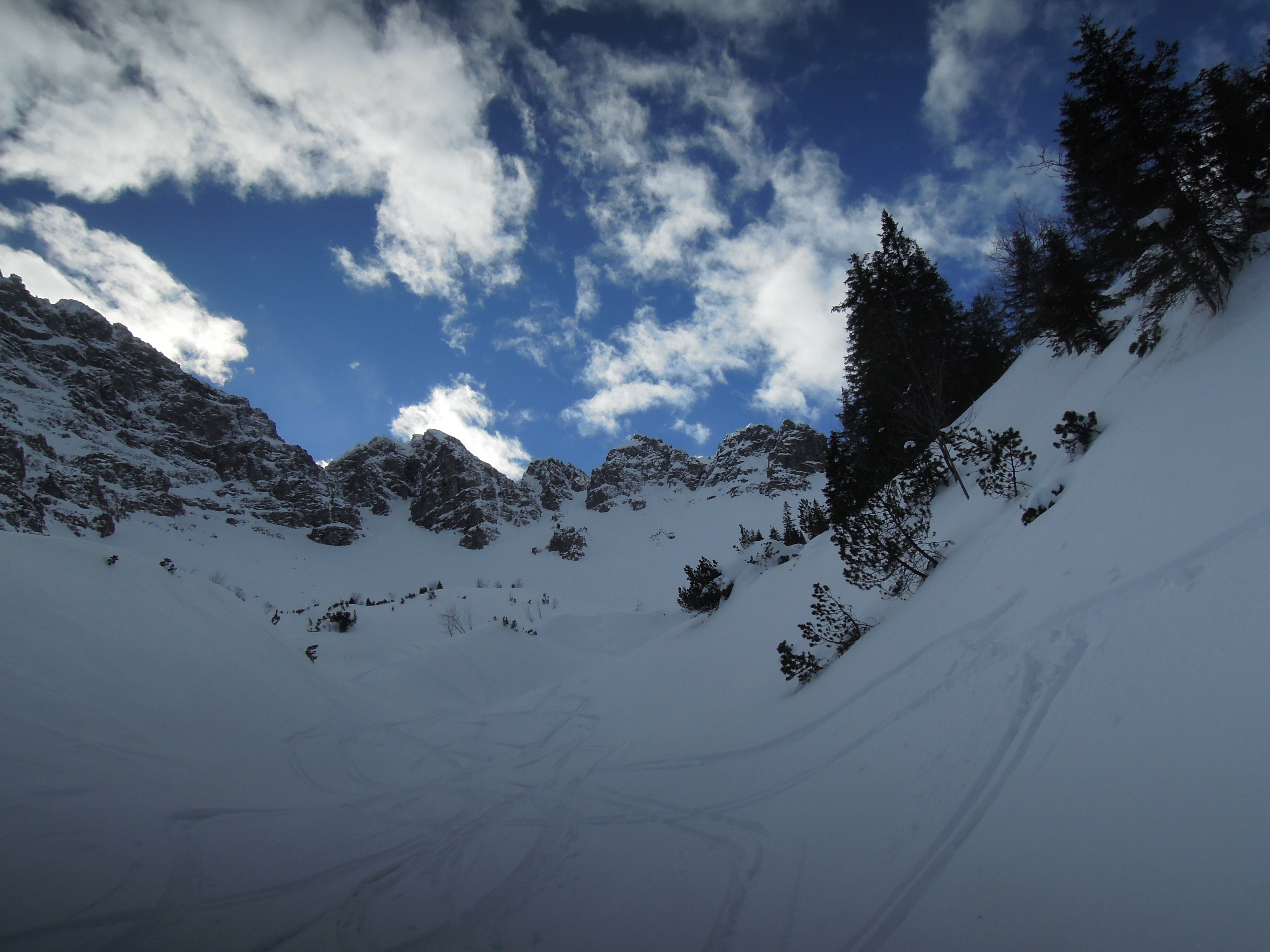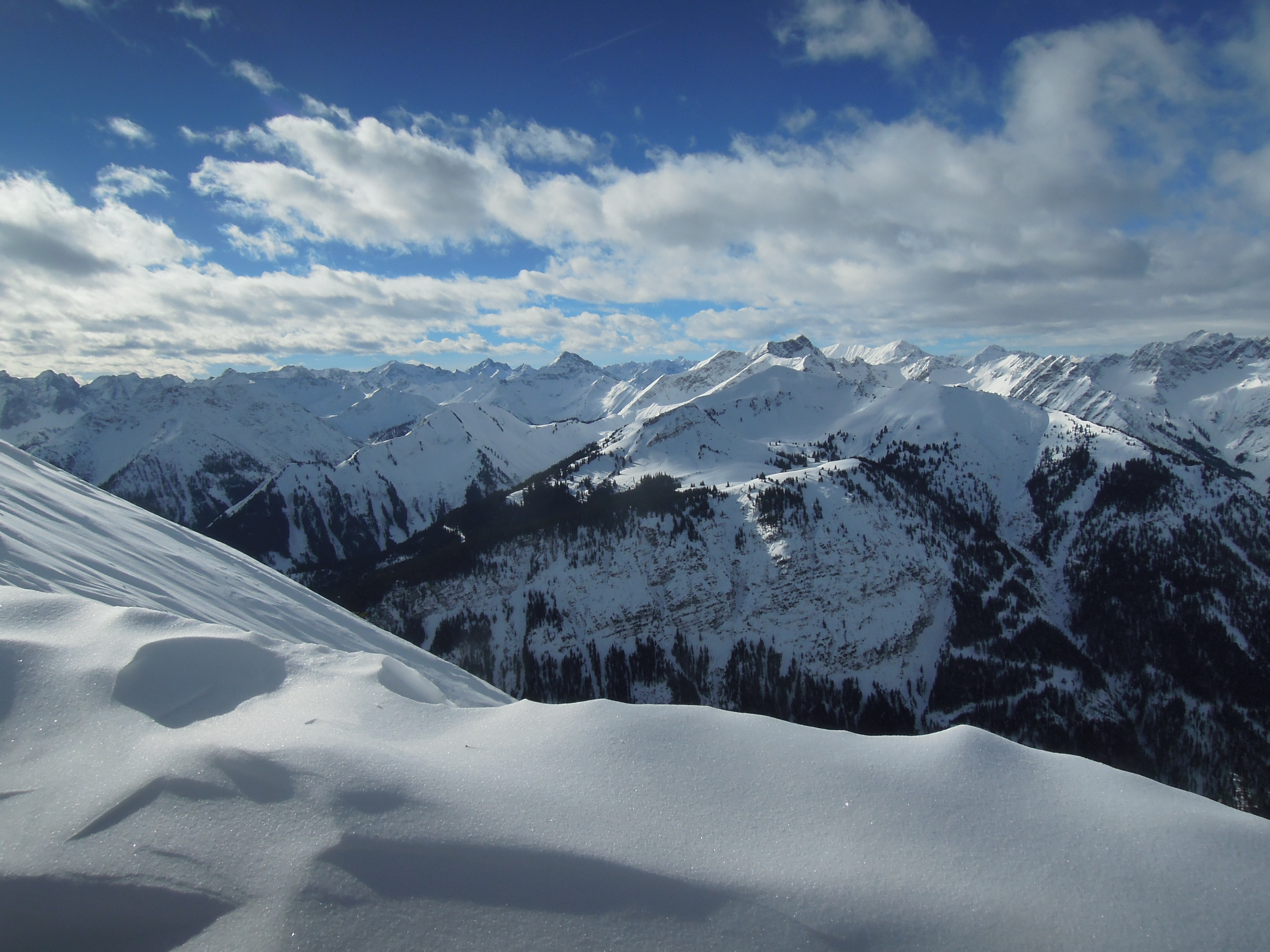 Sonstiges:zunächst wie zum Thaneller; dann rechts in eine relativ breite Rinne (bis 40 Grad; vor uns zwei Spurer (danke); ziemlcih windstill, am Thaneller irre Fahnen; Schnee oben (ca 100 hm) etwas vom Wind bearbeitet, dann sehr schön!