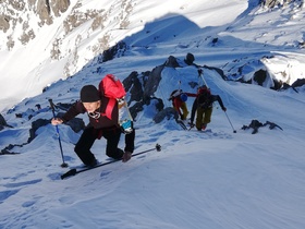 Exzellent! Von Boden zur Hanauer Hütte, weiter durchs Parzinn nach Westen. Dann direkter Aufstieg in die Nördliche Parzinnscharte und weiter zur Steinkarspitze, zuletzt zu Fuß. Ca. 20m Abrutschen in die Nordflanke und ca. 400Hm Abfahrt in bestem Pulver. Ca. 200Hm Wiederanstieg zum Gufelseejöchl und erneut Abfahrt in bestem Pulver zur Hütte und weiter nach Boden. Noch ist im Nordhang, aber auch (gerade noch) im Parzinn Platz für eigene Spuren, obwohl heute viel los war, zu allen Zielen im Talschluss.