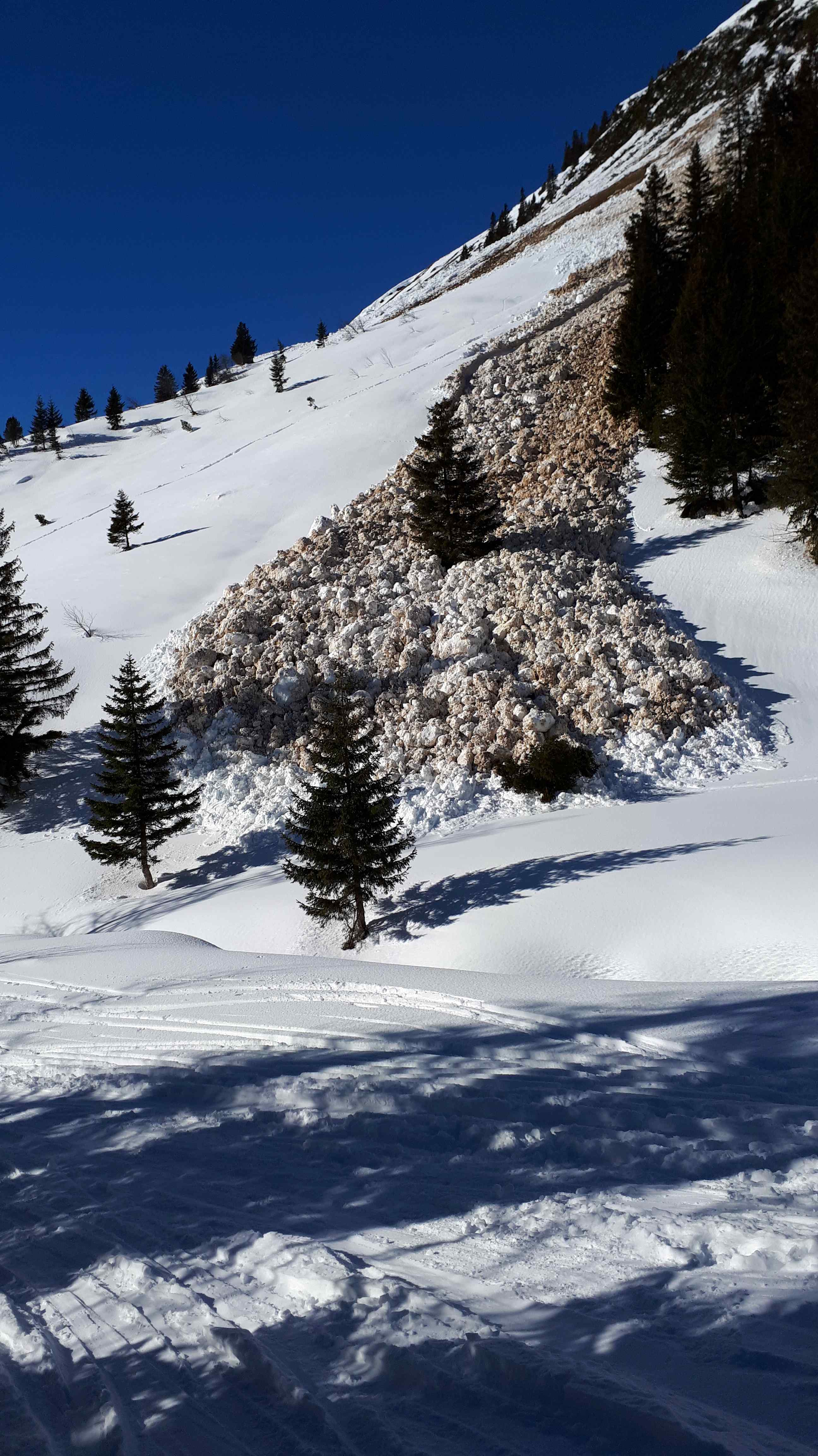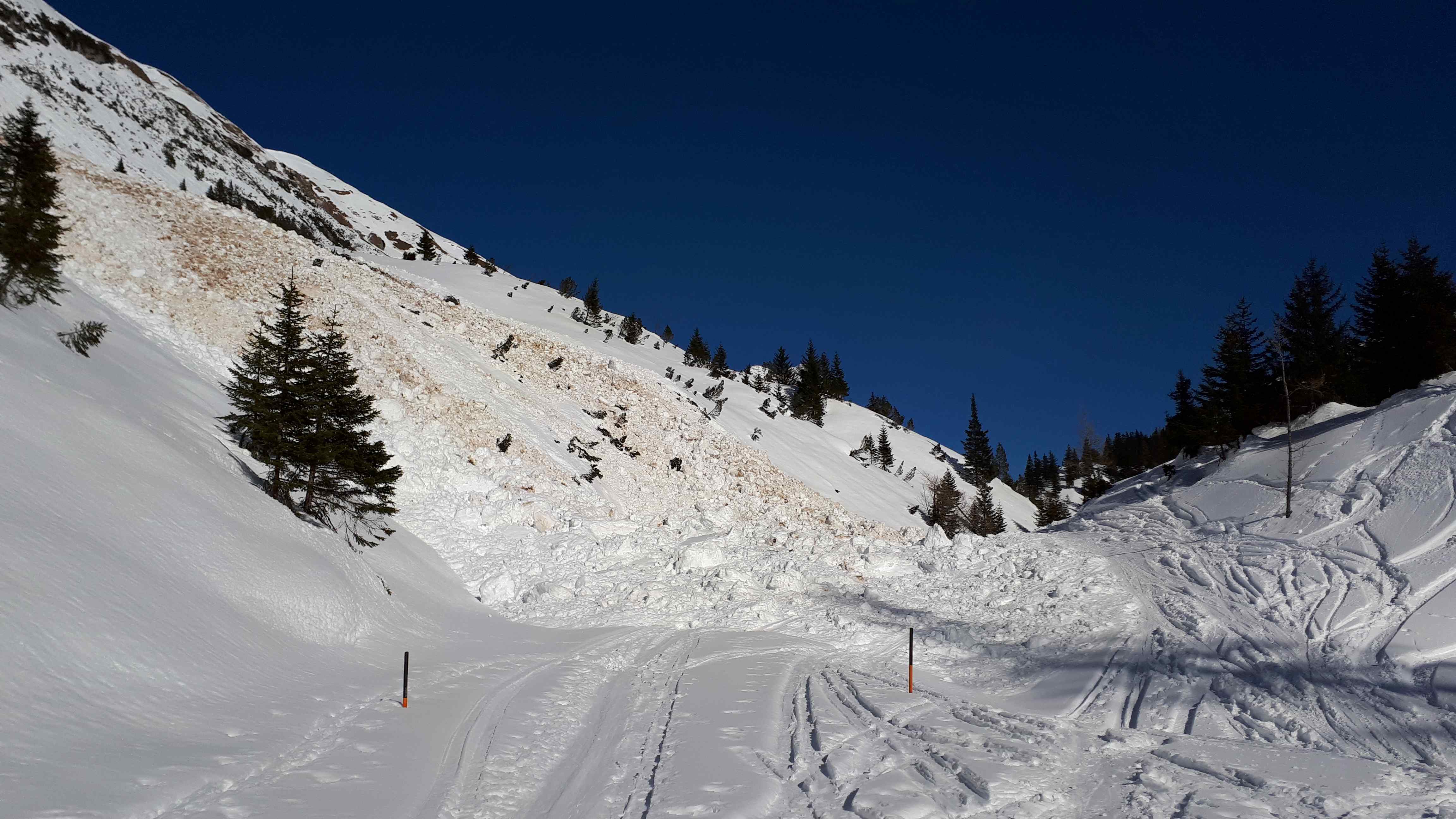 Gefahreneinschätzung: Die Südseitigen Hänge sind noch nicht komplett entladen, auch heute noch einige kleiner Abgänge beobachtet