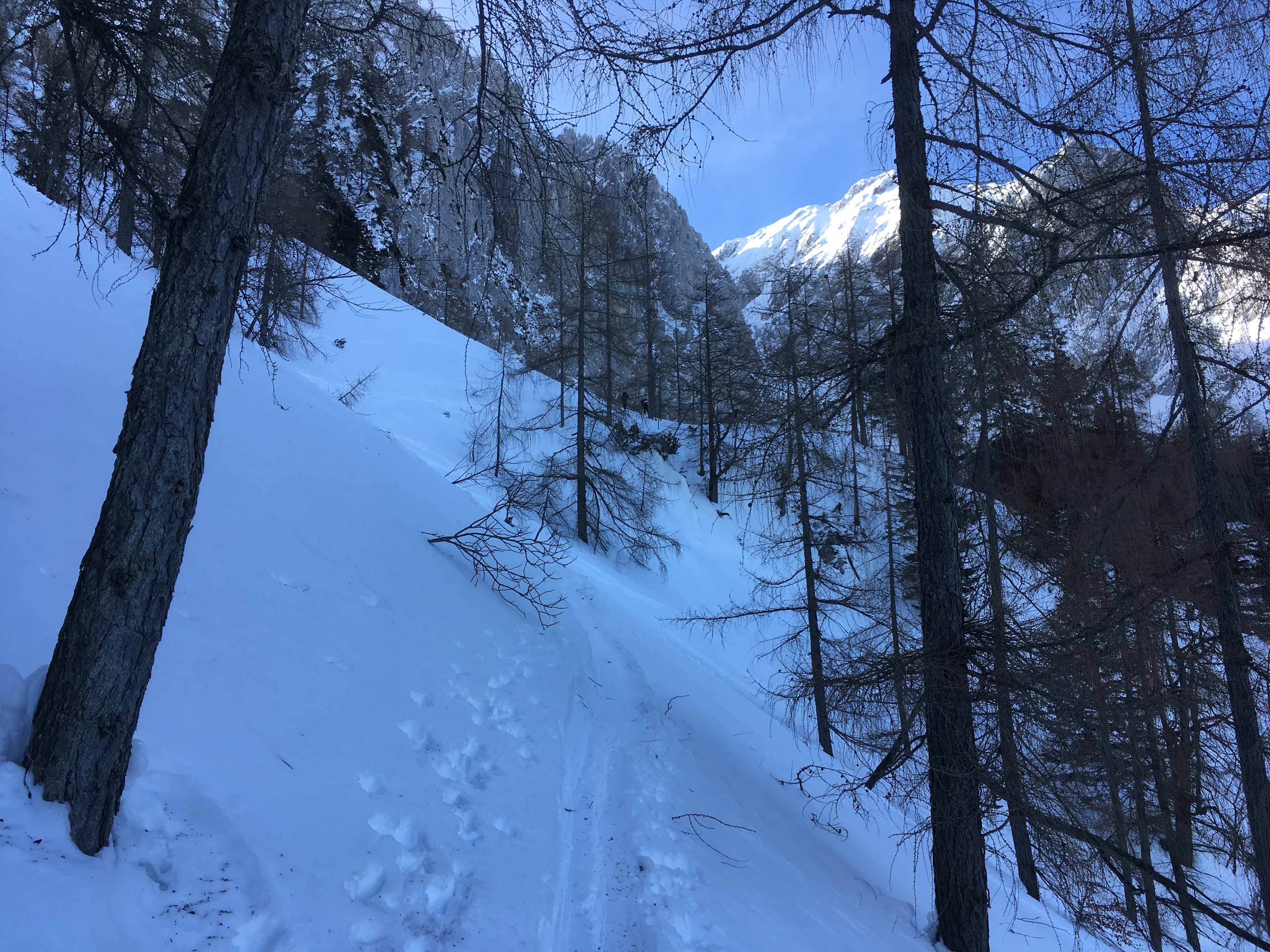 Querung von den Aufstiegshängen zurück in das eigentliche Kar: