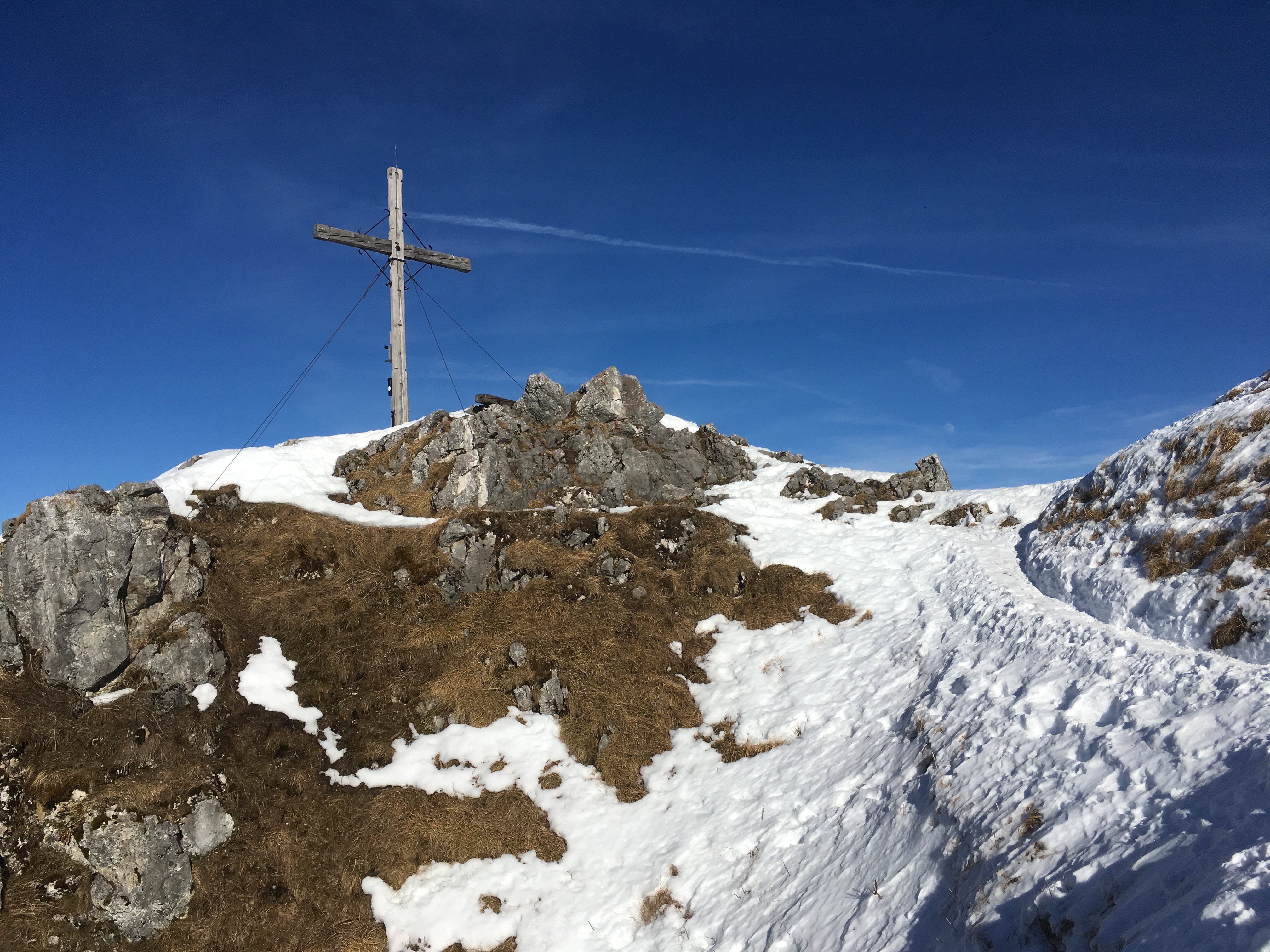 Die letzten Meter zum Gipfelkreuz des Heuberg: