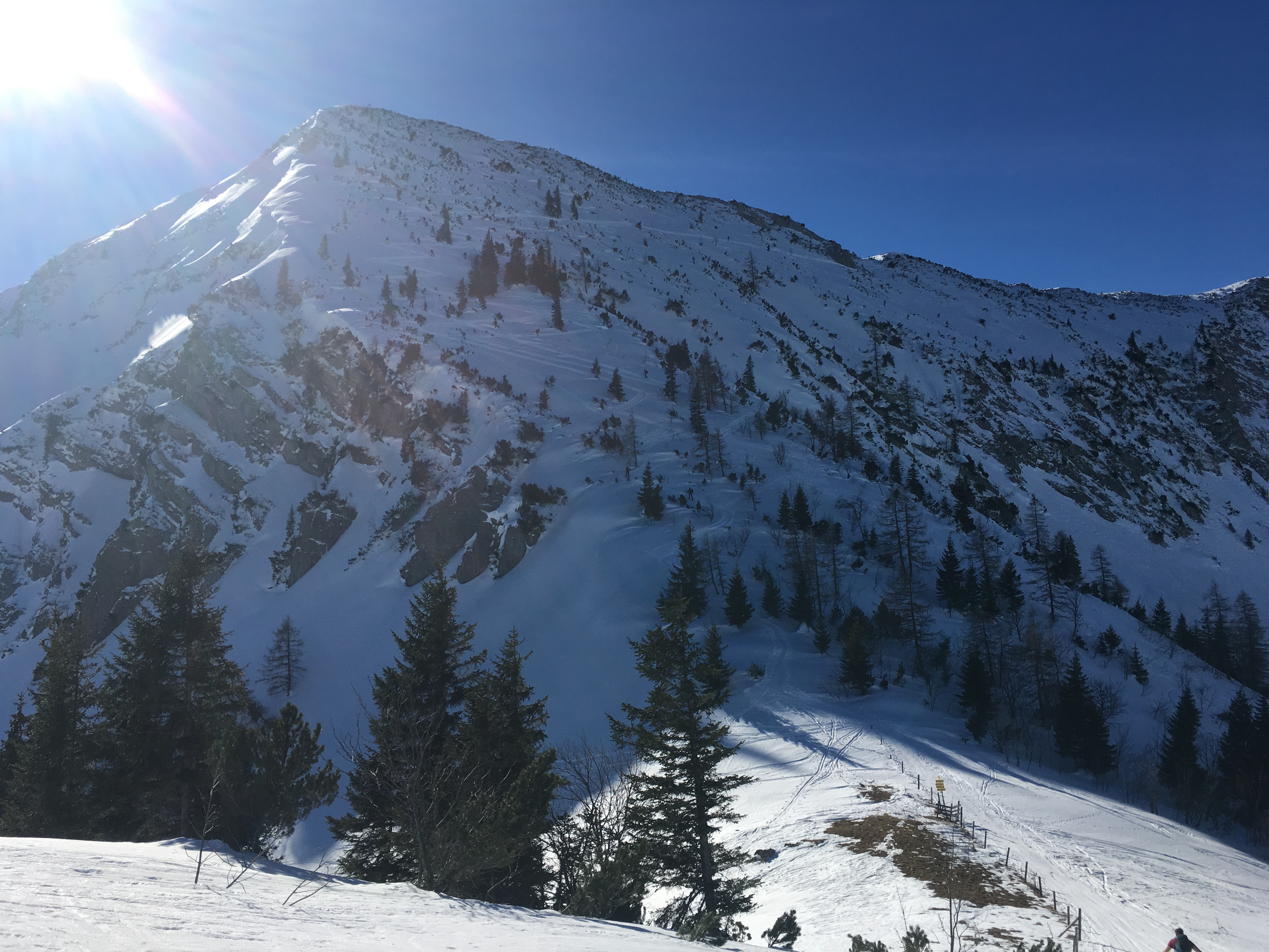 Nach der Südabfahrt ein Blick zurück zu den S-Hängen (steiler als es hier ausschaut):