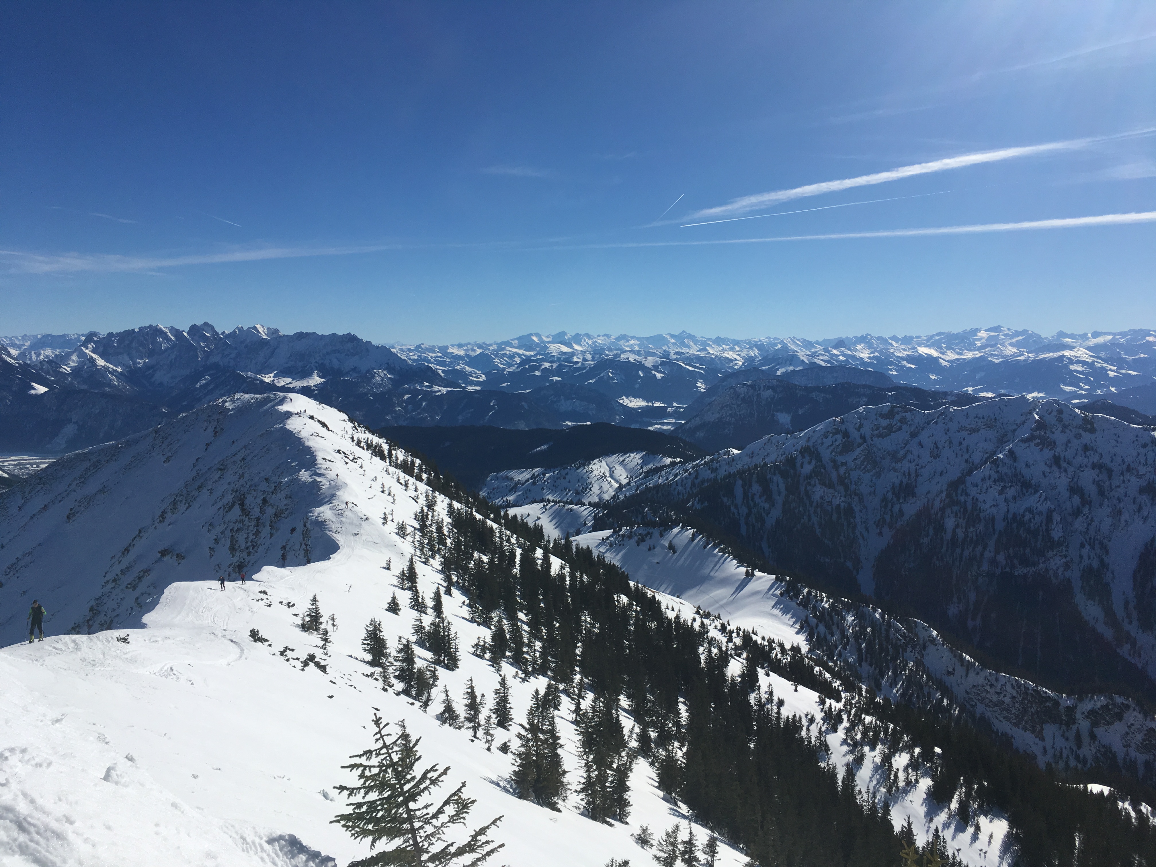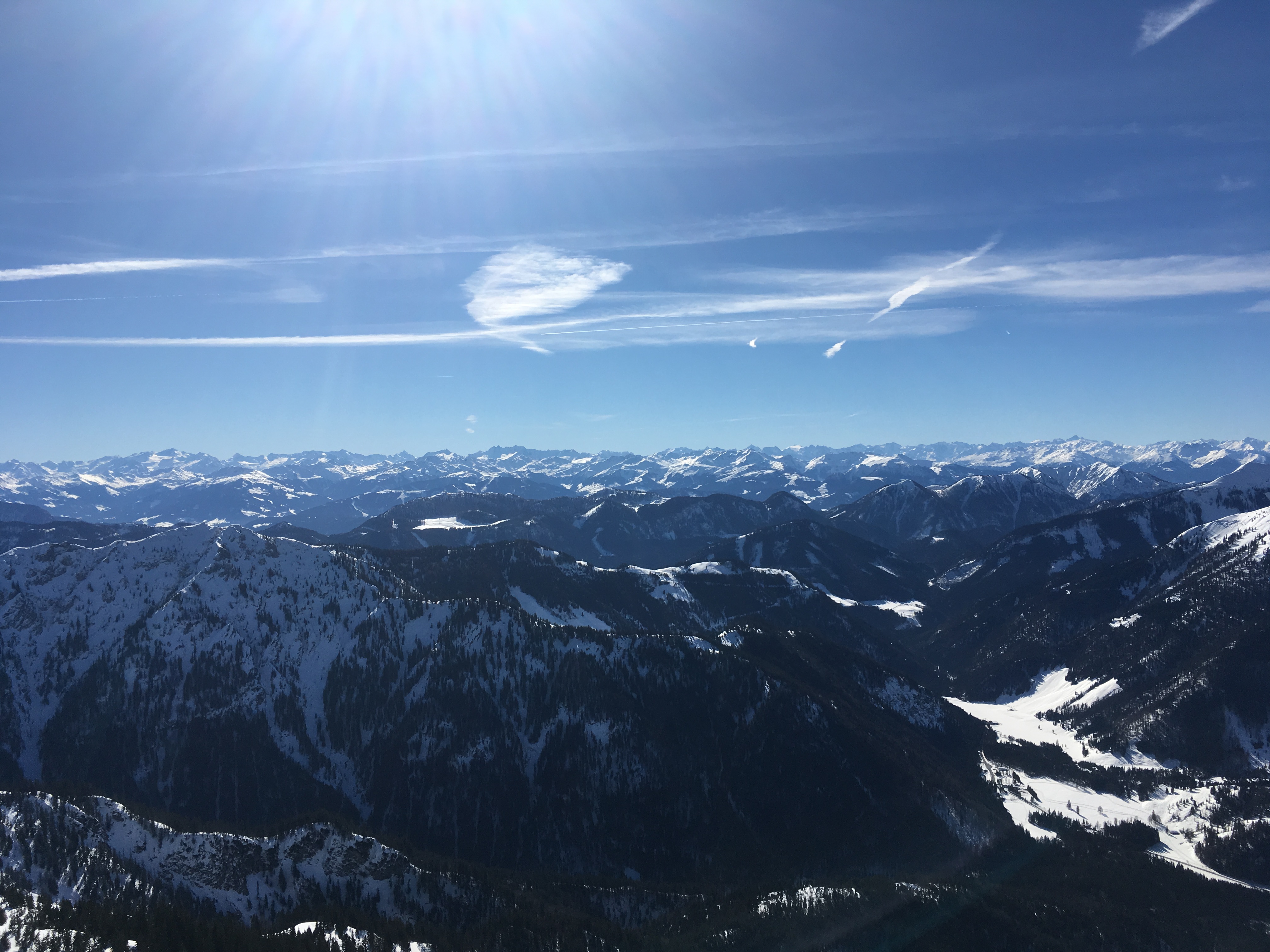 Sonstiges: Heute gab es die schon lang geplante Überschreitung des Großen Traithen mit der Südabfahrt ins Nesseltal. Auf Grund der angesagten hohen Temperaturen und des mal wieder doch nicht ganz so frühen Starts nahm ich den Skibus hoch zum Sudelfeld (Wedellift). Nach kurzer Abfahrt zügig durch das Skigebiet hoch zum Oberen Sudelfeld - Hochbetrieb im gesamten Gebiet. Nach Abfahrt zur Rosengasse (dort startet der klassische Nordanstieg auf den Großen Traithen) ging es im Tourengeher-Herdenauftrieb über die Rosengassen-Alm und den N-Anstieg zum Steilner Joch. Unter dem Steilner Joch eine kurze, etwas unangenehme nordseitige Querung. Am Grat über das Untersberger Joch zum Gipfel des Großen Traithen und an diesem ebenfalls viel Betrieb - ich kann mich nicht erinnern, im Sommer am Traithen jemals so viele Leute gesehen zu haben. Da war die Südabfahrt dann richtig einsam dagegen. 12.30 Abfahrtsbeginn war allerdings schon viel zu spät und der erste Teil der Abfahrt durch das Bachbett im Nesseltal war auch richtig mies: Tiefer Schnee im Wechsel mit Bruchharsch und Lawinenbrocken. Laut Tourenbeschreibung gäbe es einen Weg oberhalb des Bacheinschnitts. Unten heraus läuft das Tal recht gut. Zuletzt muss man einige Kilometer zurück in den Ort skaten / schieben - wobei bei mir der Gedanke aufkam, warum so etwas (Langlaufen) irgend jemand freiwillig macht (okay, die haben auch eine andere Ausrüstung ...).