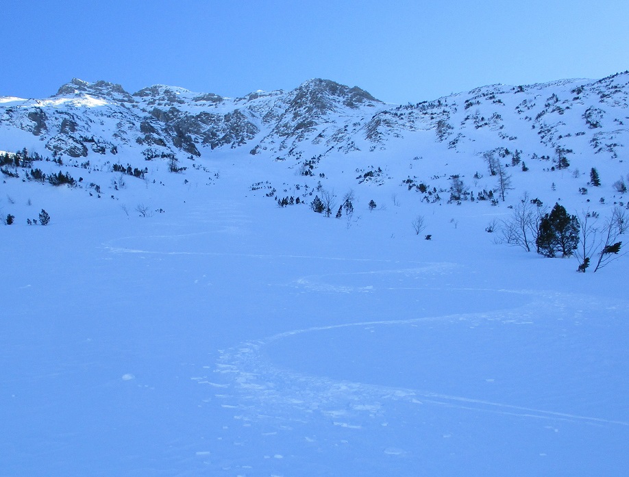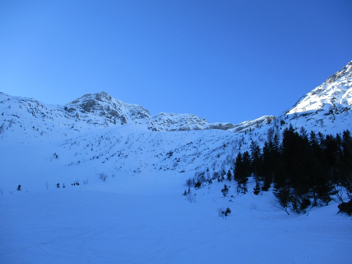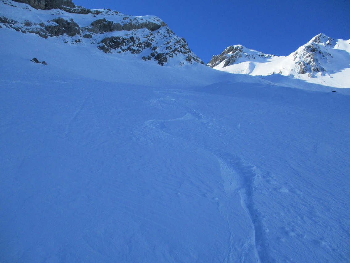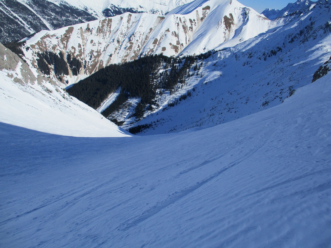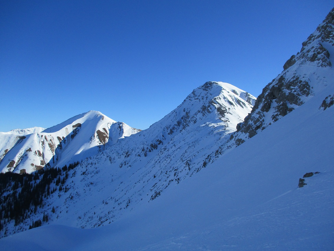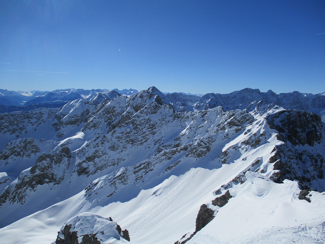 Tourenverhältnisse: Gut / feines Wetter / wenig Leut / gepresster Pulver - man findet auch noch Pulverhänge ( muß aber schon suchen ) / Gipfelhang firnig / Fußanstieg über den Nordgrat mit guter Stapfspur