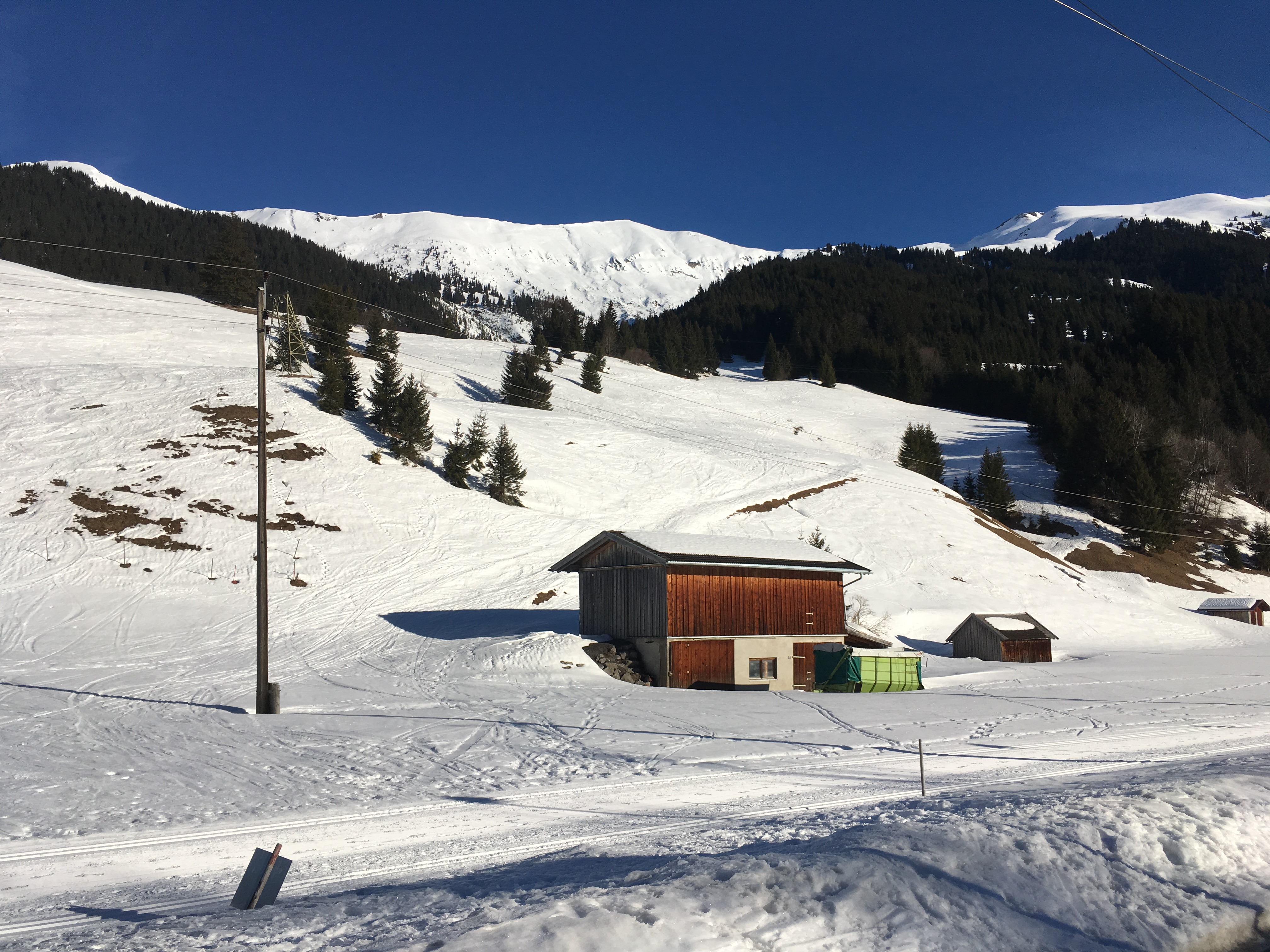 Blick vom Ausgangspunkt am Bhf. Lähn (die Skier werden am Bahnsteig angeschnallt!):