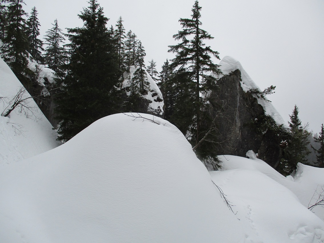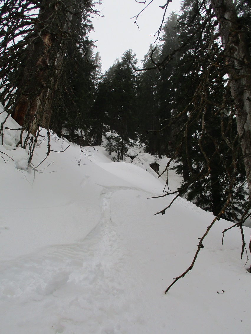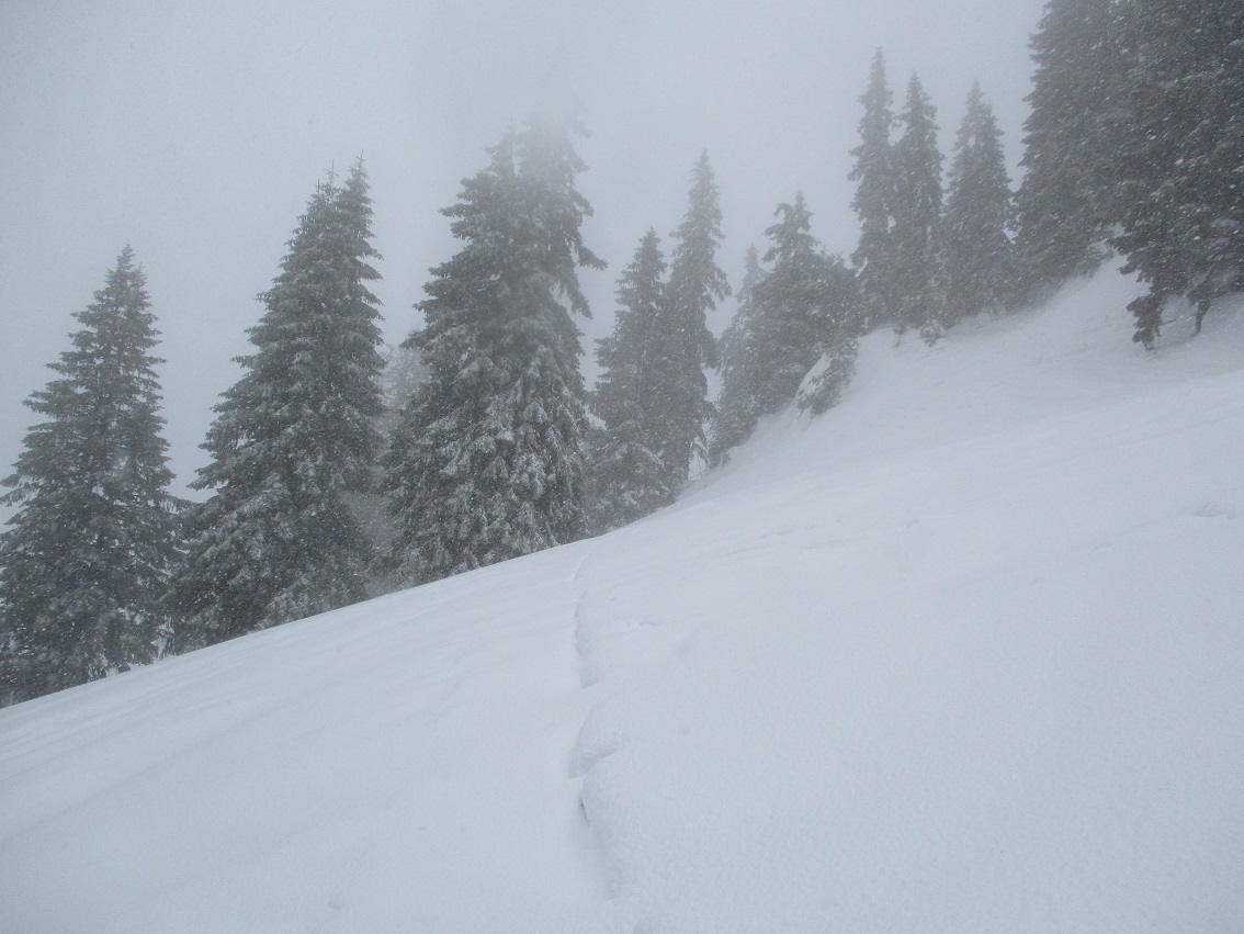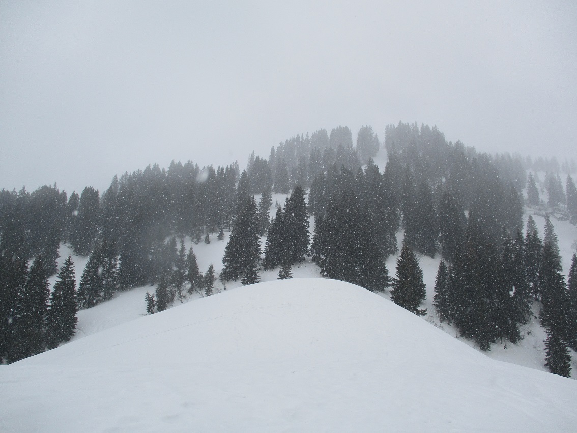 Tourenverhältnisse: unten Regen / ab 1300 m Schneefall / Schnee komplett durchnässt - aber noch kein Sumpf / traf niemanden / trotzdem alles ganz passabel zu fahren