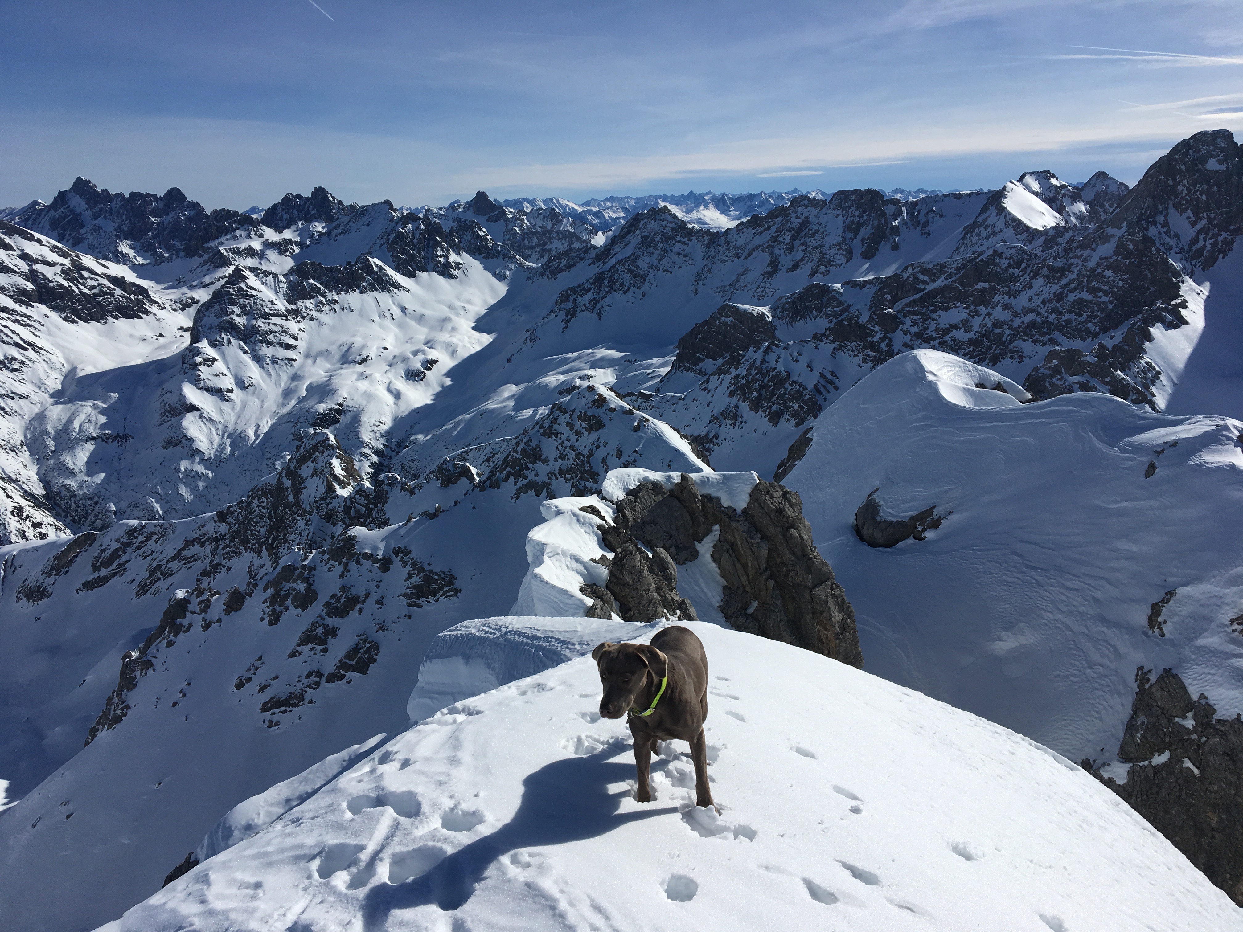 Tourenverhältnisse: LWS 1, länger kein Neuschnee, recht warm, windstill am Gipfel