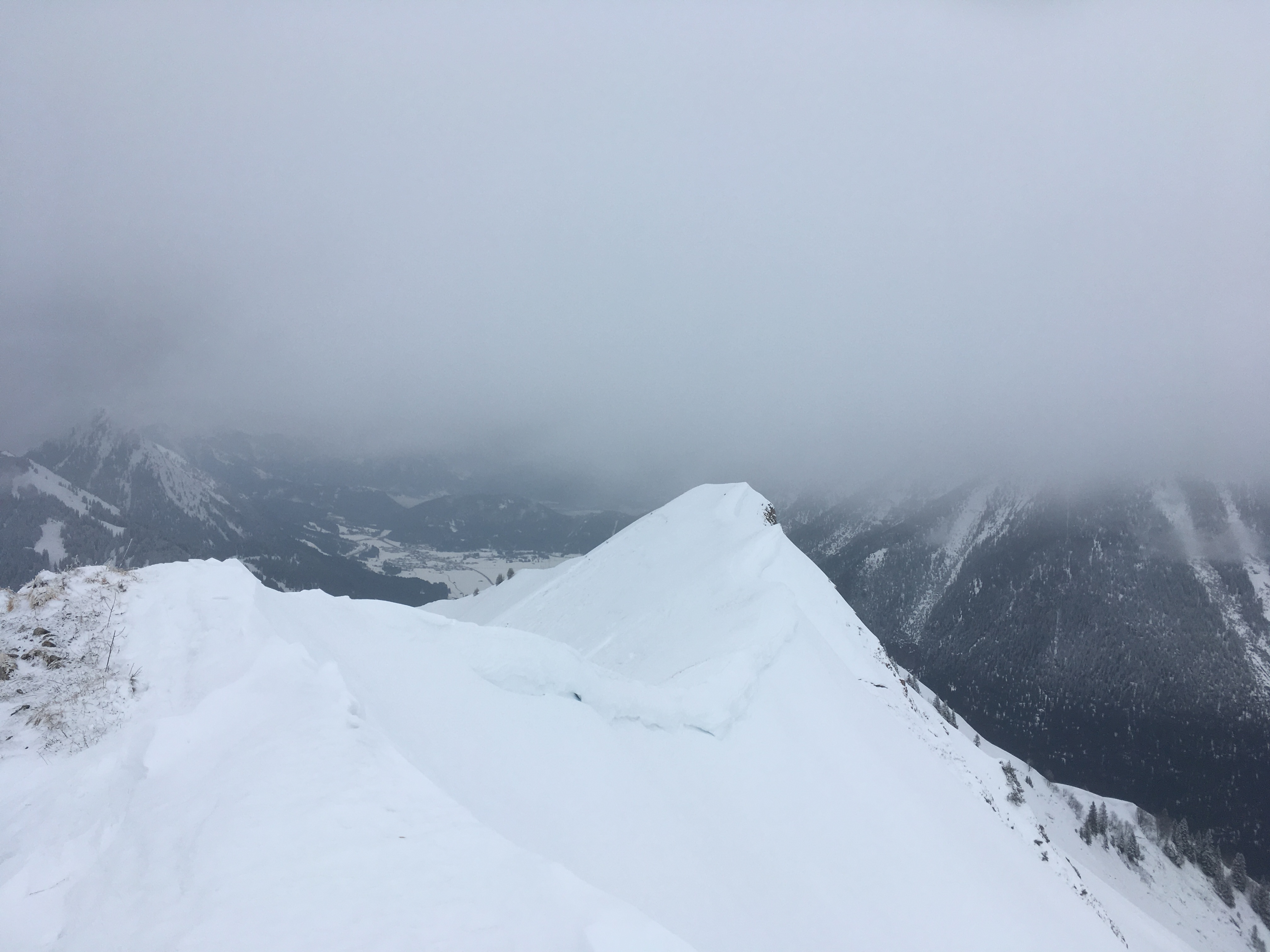 Blick zurück, zwischendurch ist es doch eher ein scharfer Grat (Vorsicht wegen Wächten, bin trotz großen Abstands ein Mal mit dem Stock in einen Hohlraum gekommen!):