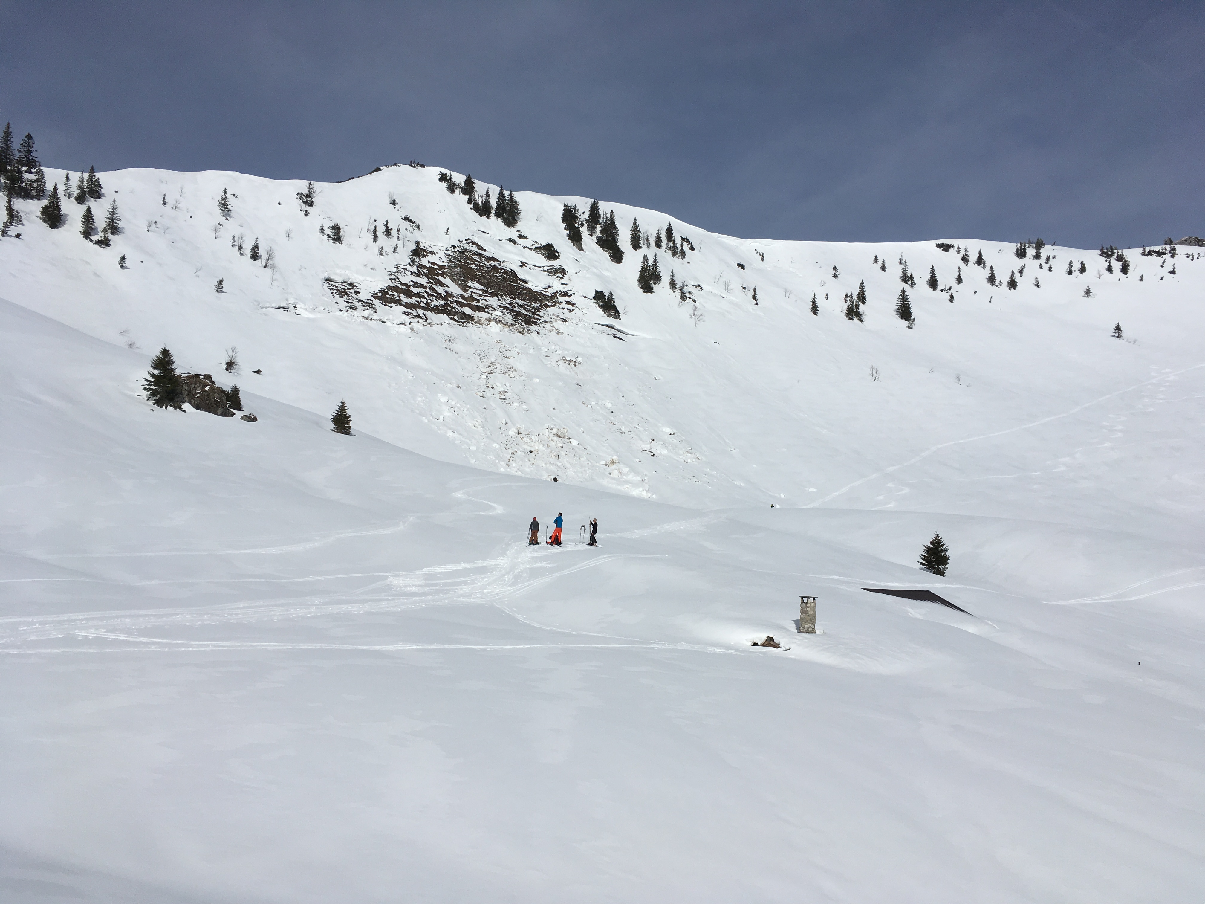 Gefahreneinschätzung: Bei entsprechender Spurwahl keine Gefahr - Lawine und Anrisse in den steilen Hängen von Mühlhornwand und Wandspitz